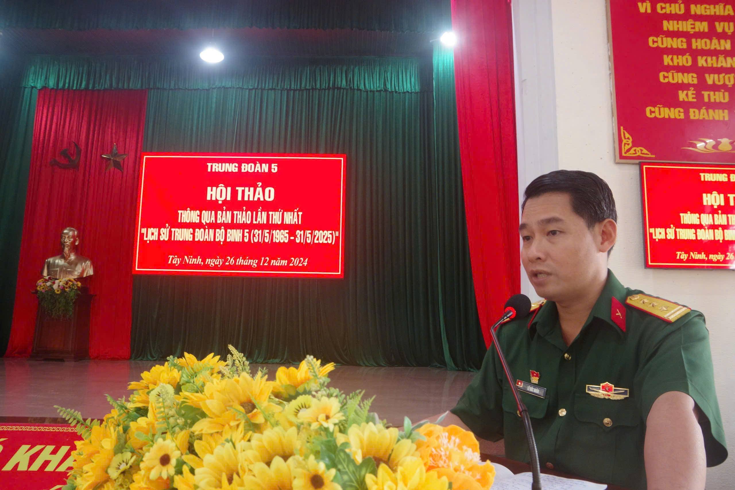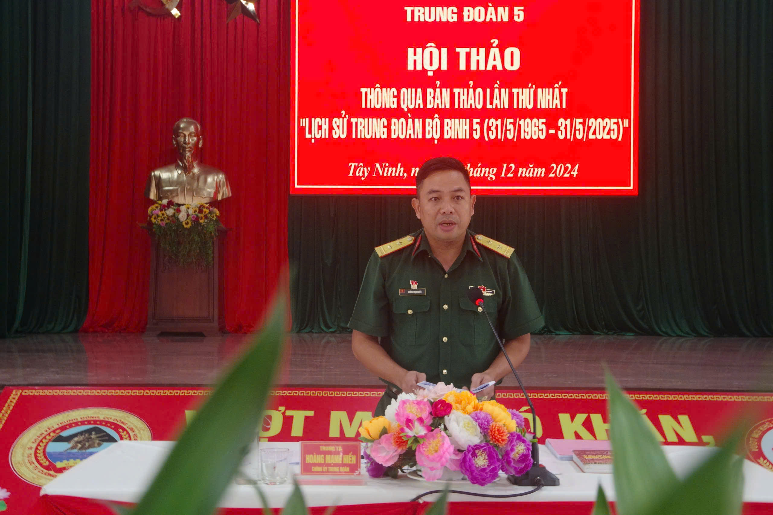 (QK7 Online) - Ngày 26/12, Trung đoàn 5 (Sư đoàn 5) tổ chức hội thảo thông qua bản thảo lần thứ nhất “Lịch sử Trung đoàn bộ binh 5 (31/5/1965 - 31/5/2025)”. Dự hội thảo có Thượng tá Lê Đức Nhân, Phó Chính ủy Sư đoàn, chỉ huy Trung đoàn 5qua các thời kỳ.