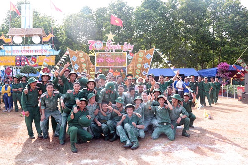 Các chiến sĩ chụp hình lưu niệm tại hội trại.​