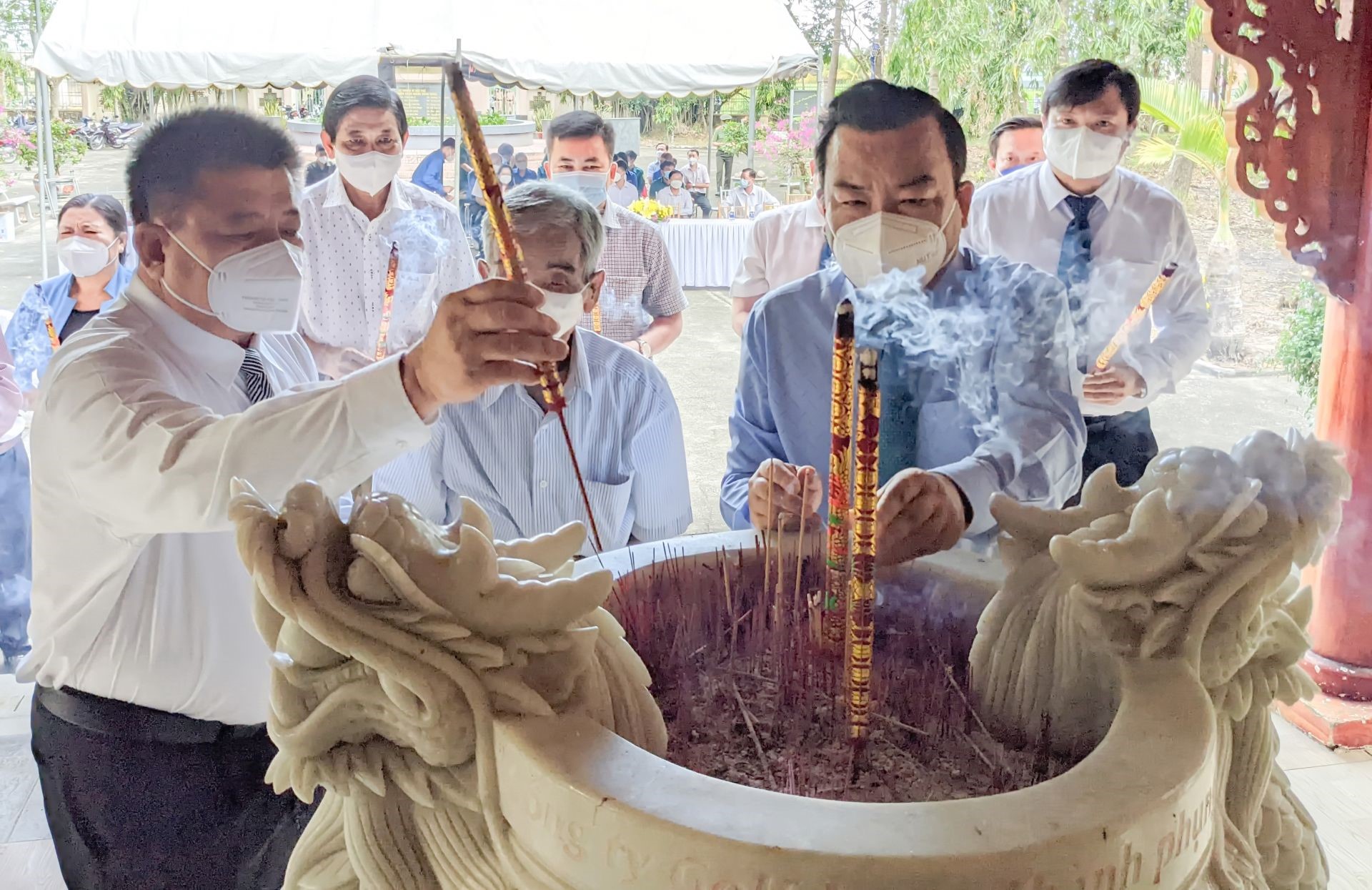 Các đại biểu thắp hương tưởng niệm anh linh các anh hùng đã anh dũng hy sinh vì độc tập tự do của Tổ quốc.