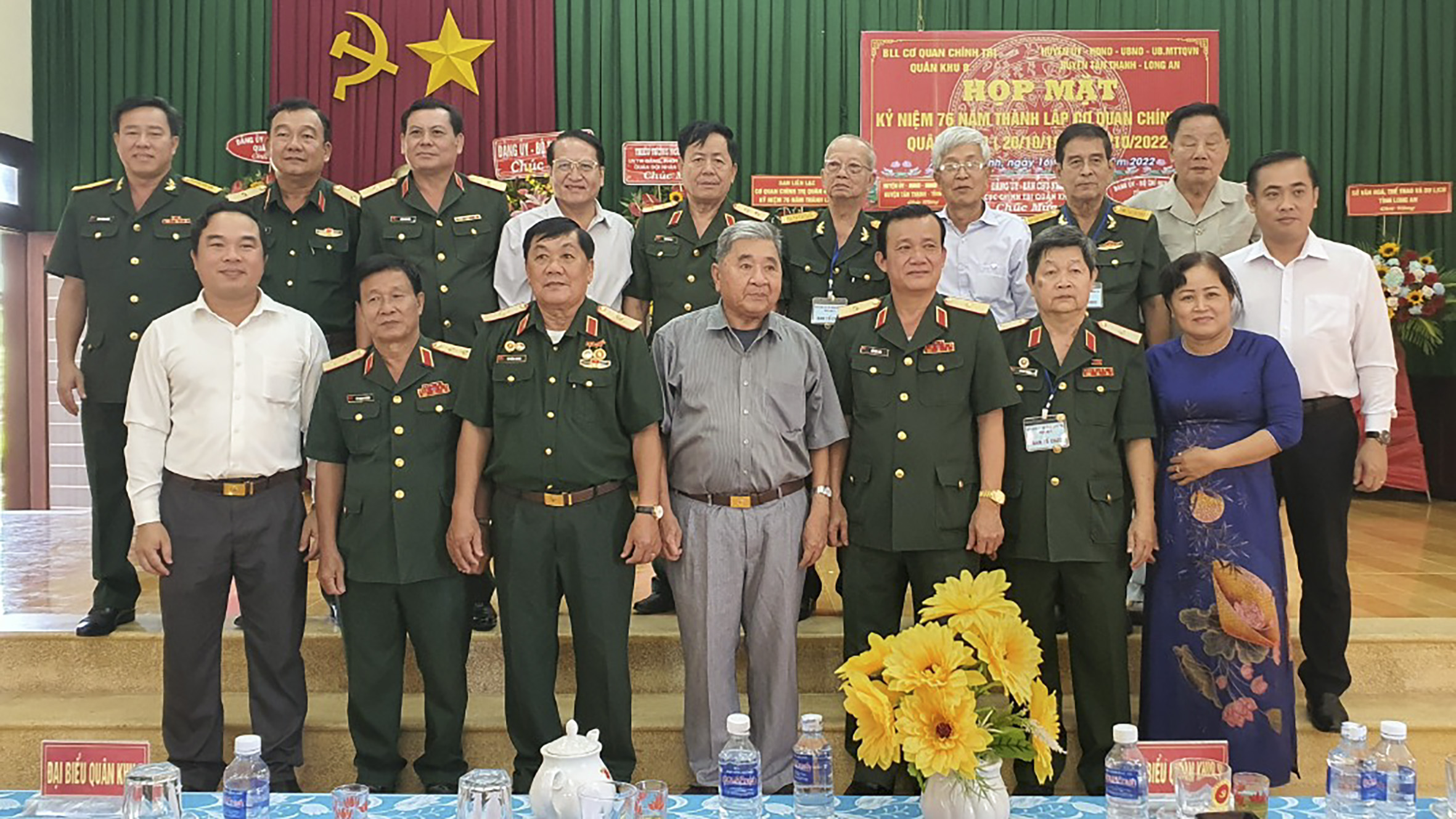 (QK7 Online) - Ngày 16-10, tại UBND xã Nhơn Ninh (huyện Tân Thạnh, tỉnh Long An), Ban liên lạc truyền thống cơ quan Chính trị Quân khu 8 tổ chức họp mặt kỷ niệm 76 năm thành lập (20/10/1946 - 20/10/2022). Đến dự có Thiếu tướng Hồ Văn Thái, Chính ủy Quân khu 9; Thiếu tướng Đặng Văn Lẫm, Phó Tư lệnh Quân khu 7.