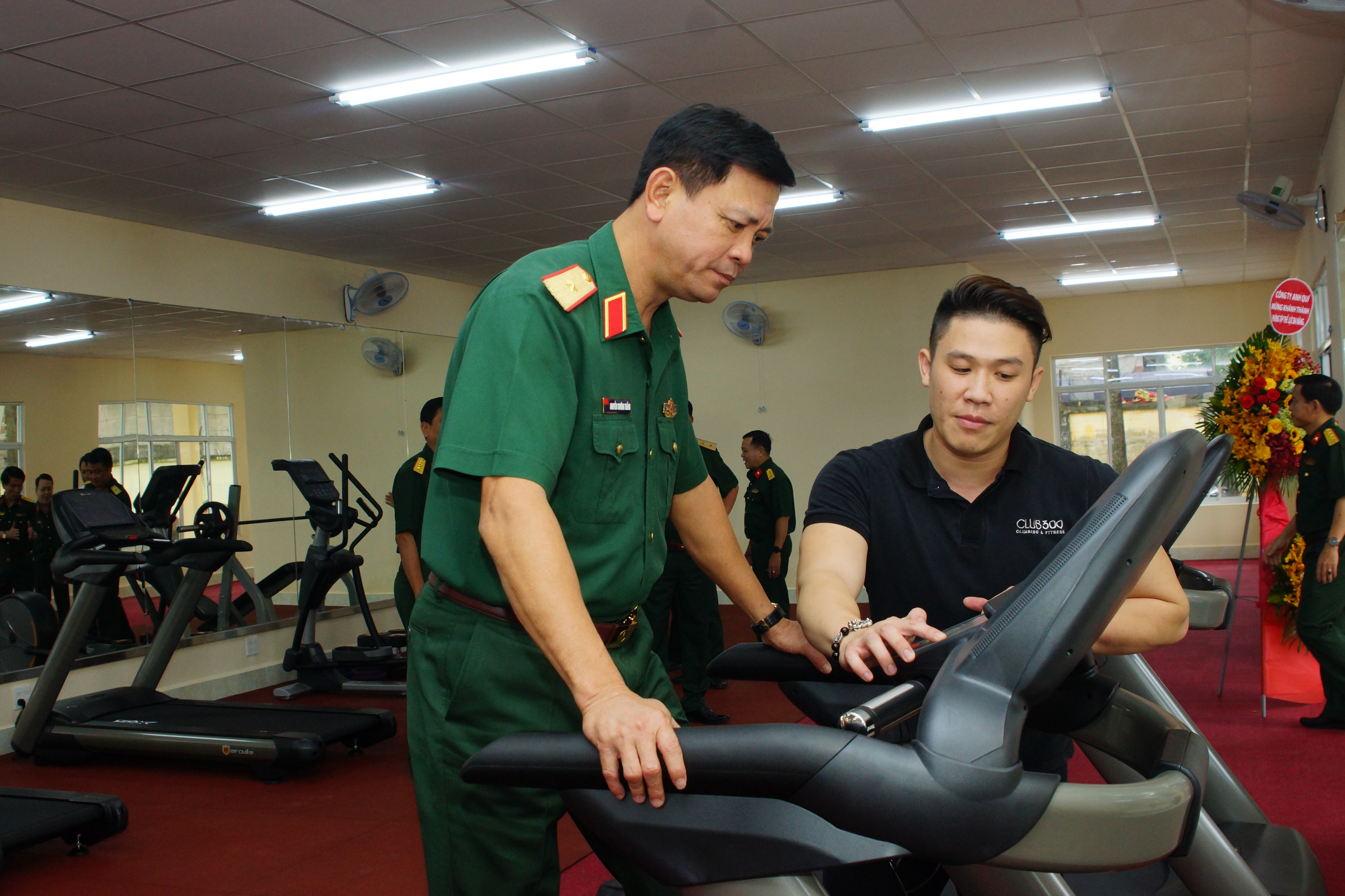 Thiếu tướng Nguyễn Trường Thắng, Phụ trách Tư lệnh Quân khu 7 kiểm tra dụng cụ luyện tập ở phòng tập thể hình đa năng.