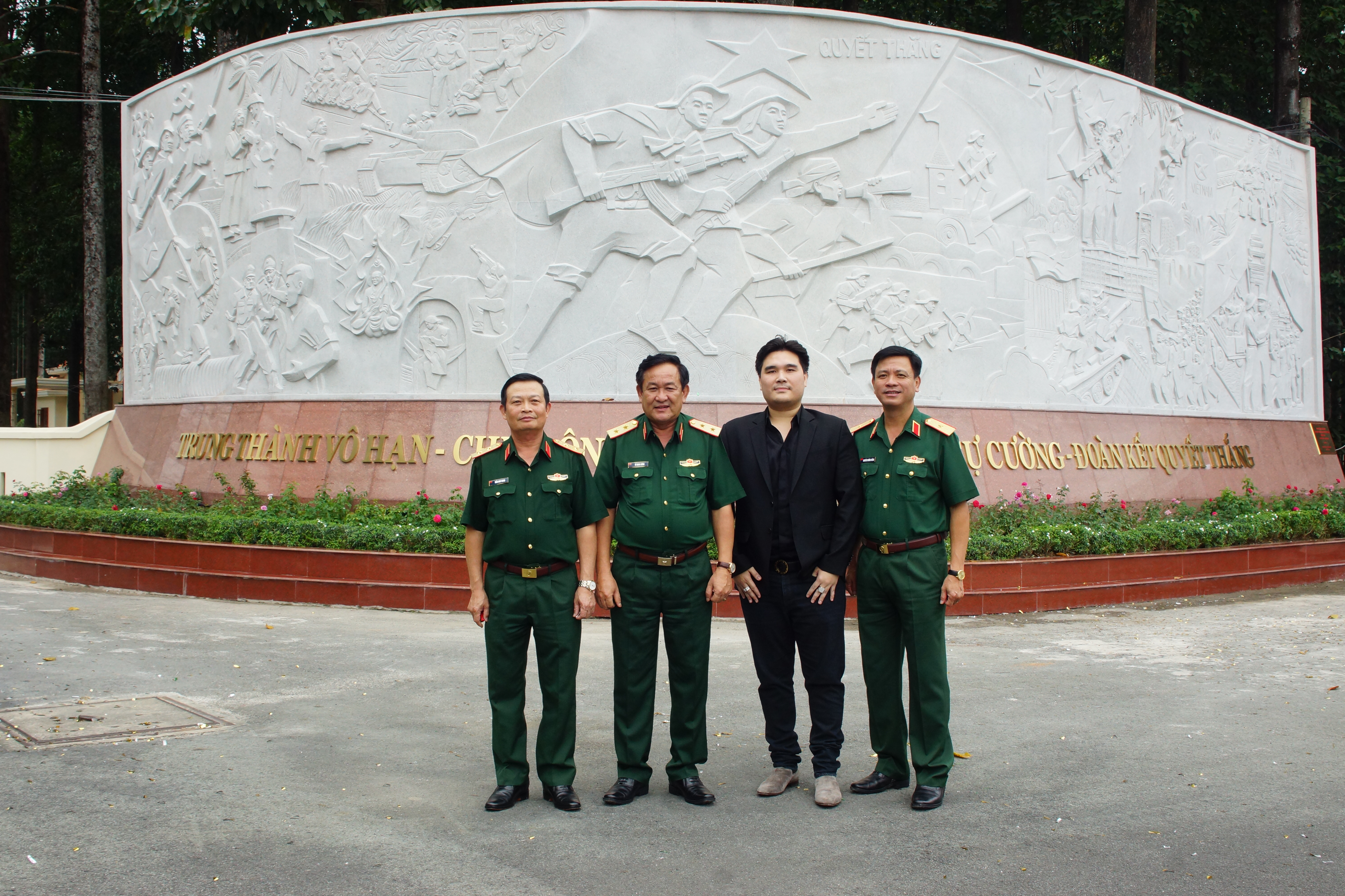 Thủ trưởng Bộ Quốc phòng, Thủ trưởng Bộ Tư lệnh Quân khu cùng nhà tài trợ công trình phù điêu.