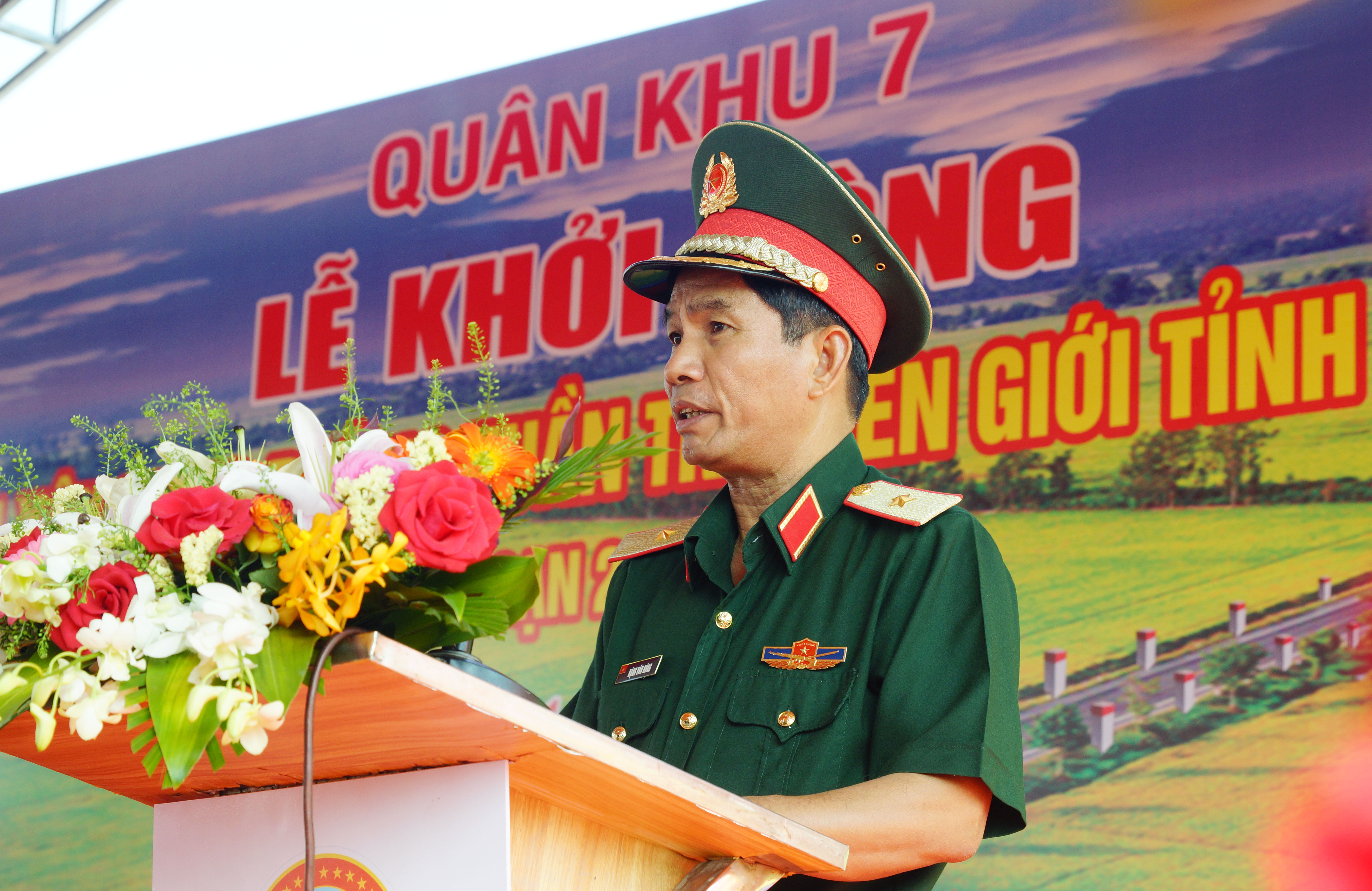 Thiếu tướng Đặng Văn Hùng, Phó Tư lệnh – Tham mưu trưởng Quân khu, Trưởng Ban Quản lý dự án phát biểu tại buổi lễ