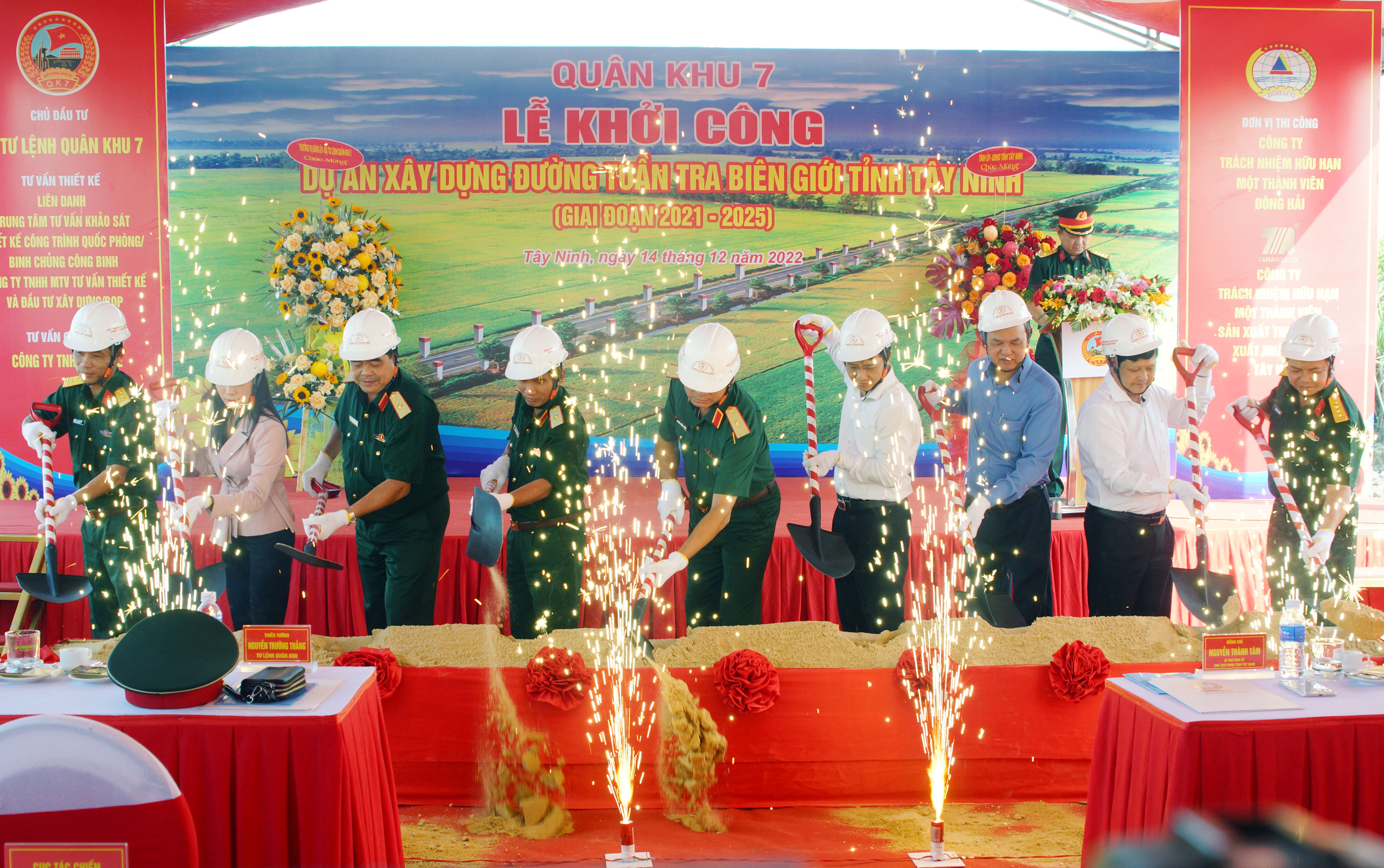 (QK7 Online) – Ngày 14 tháng 12, Bộ Tư lệnh Quân khu 7 tổ chức Lễ khởi công Dự án xây dựng đường tuần tra biên giới tỉnh Tây Ninh (giai đoạn 2021 – 2025). Dự lễ có Thiếu tướng Nguyễn Trường Thắng, Ủy viên Trung ương Đảng, Tư lệnh Quân khu; đồng chí Nguyễn Thành Tâm, Ủy viên Trung ương Đảng, Bí thư Tỉnh ủy Tây Ninh. Thiếu tướng Đặng Văn Hùng, Phó Tư lệnh – Tham mưu trưởng Quân khu, Trưởng Ban Quản lý dự án; đồng chí Dương Văn Thắng, Phó Chủ tịch Ủy ban Nhân dân tỉnh Tây Ninh. Dự lễ có thủ trưởng cơ quan Bộ Quốc phòng, cơ quan Quân khu cùng lãnh đạo Sở, Ban, ngành tỉnh Tây Ninh.