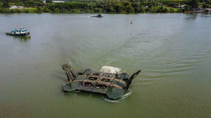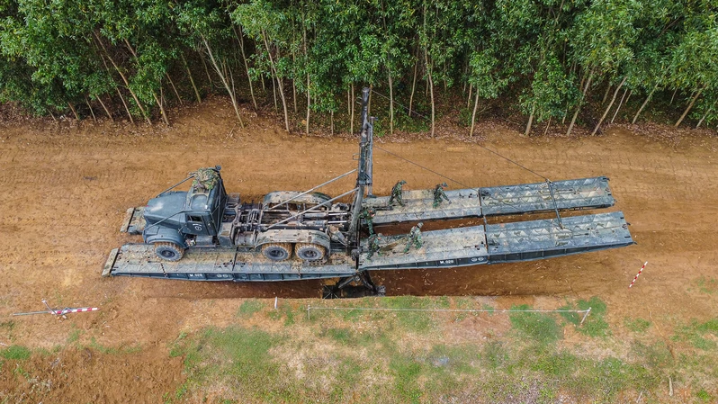 Huấn luyện bắc cầu TMM-3M qua khu vực có địa hình hiểm trở.
