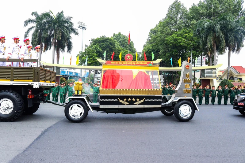 Xe tang đưa linh cữu đồng chí rời Nhà Tang lễ Quốc gia phía Nam về quê nhà xã Phú Túc, tỉnh Vĩnh Long.