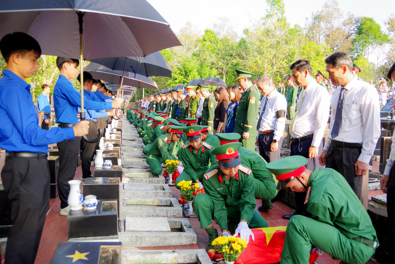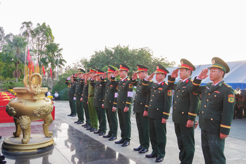 Trong giờ phút xúc động và thiêng liêng, trước anh linh các liệt sĩ, lãnh đạo tỉnh và các lực lượng vũ trang đã kính cẩn dâng hoa, thắp nén tâm nhang và dành phút mặc niệm bày tỏ lòng biết ơn sâu sắc tưởng nhớ các liệt sĩ đã anh dũng hy sinh vì sự nghiệp đấu tranh giải phóng dân tộc, xây dựng và bảo vệ Tổ quốc Việt Nam xã hội Chủ nghĩa.