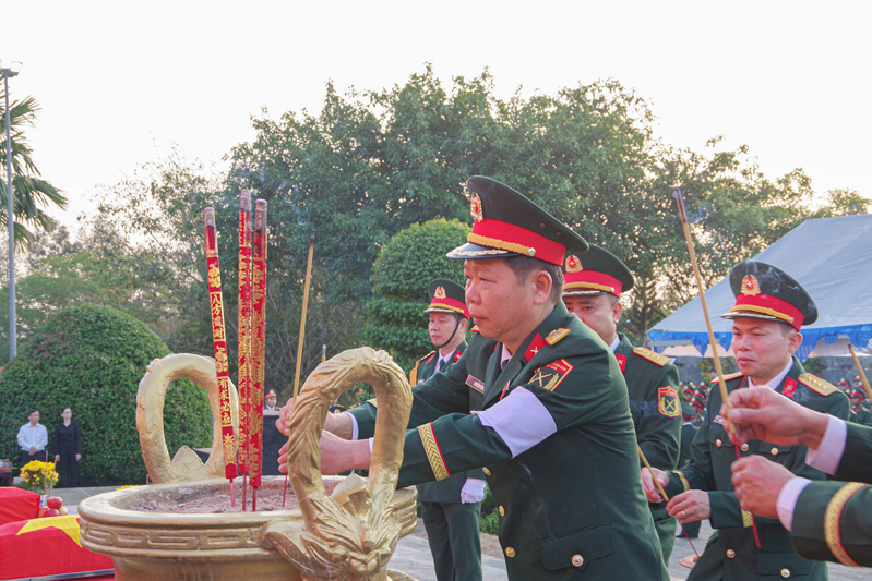 Đại tá Nguyễn Văn Lộc, Phó Chủ nhiệm Chính trị Quân khu 7 và đồng chí Tôn Ngọc Hạnh, Ủy viên dự khuyết Ban Chấp hành Trung ương Đảng, Phó Bí thư Thường trực Tỉnh ủy, Chủ tịch HĐND tỉnh Đồng Nai thực hiện nghi lễ tiễn đưa hài cốt liệt sĩ đến vị trí an táng tại Nghĩa trang liệt sĩ Bình Phước tỉnh Đồng Nai.