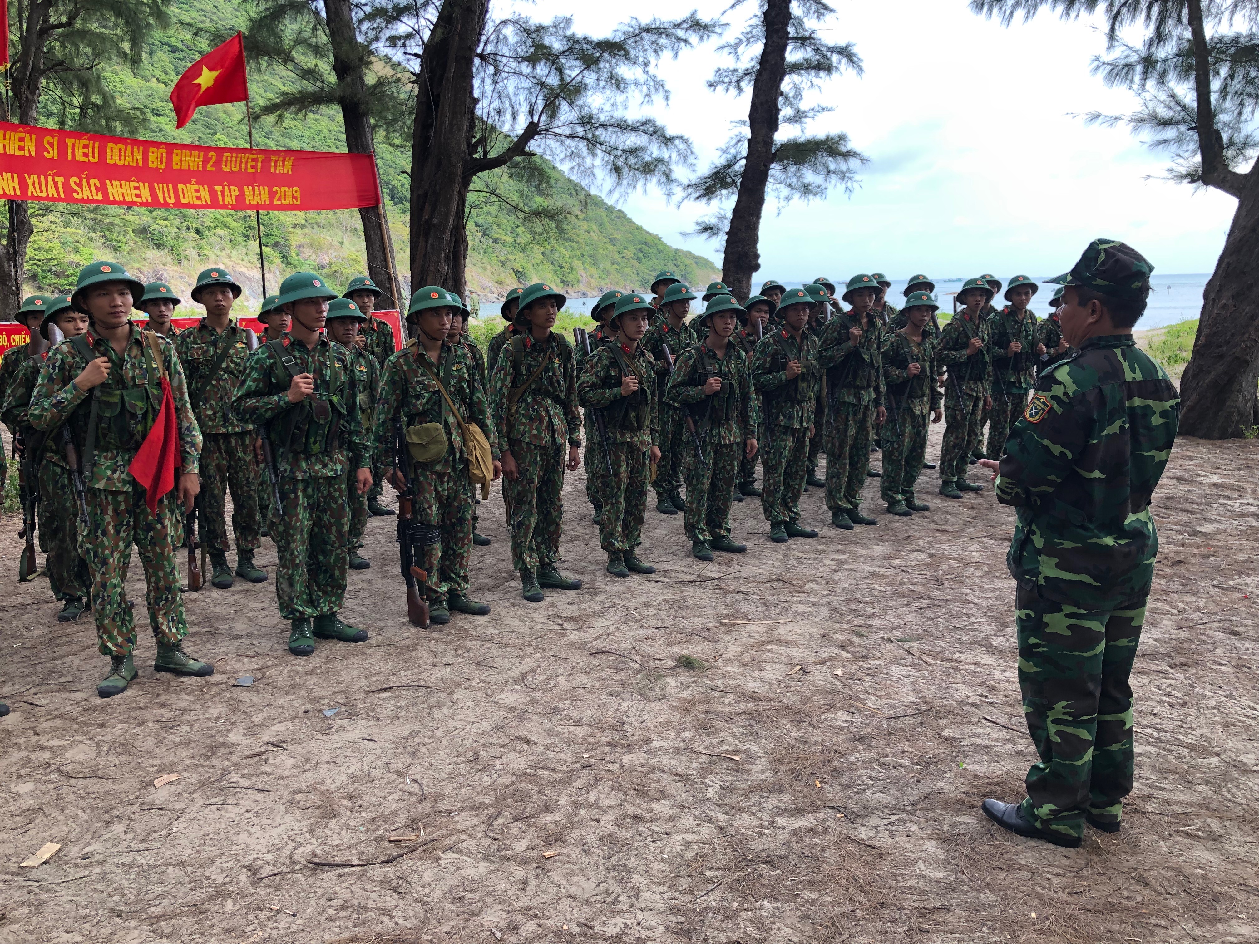 (QK7 Online) - Thực hiện kế hoạch huấn luyện sẵn sàng chiến đấu năm 2019, Ban Chỉ huy quân sự huyện Côn Đảo vừa tổ chức diễn tập chiến thuật có bắn đạn thật với đề mục “Trung đội bộ binh phòng ngự bờ biển” cho cán bộ, chiến sĩ Tiểu đoàn bộ binh 2.