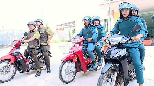 Lực lượng dân quân thường trực xã Long Tân, huyện Dầu Tiếng phối hợp thực hiện công tác tuần tra địa bàn.