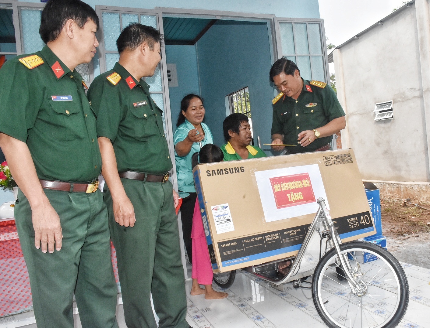 Trong năm qua, LLVT tỉnh còn thực hiện có hiệu quả phong trào “Đồng hành cùng tôn giáo”. Vào đầu tháng 11, Bộ CHQS tỉnh đã trao tặng chiếc xe lăn và bàn giao căn nhà nghĩa tình quân - dân cho gia đình ông Dương Văn Lộc (SN 1970, thôn Lồ Ồ, xã Đá Bạc, huyện Châu Đức), người dân tộc Châu Ro, theo đạo Tin Lành, bị tai biến liệt nửa người, có hoàn cảnh đặc biệt khó khăn. Đồng thời, Bộ CHQS tỉnh cũng tặng học bổng “Nâng bước tương lai” cho con ông Lộc - cháu Dương Thị Hồng Ân (SN 2011, HS lớp 2 Trường Khuyết tật Mai Linh, huyện Châu Đức) với mỗi tháng 200 ngàn đồng cho đến hết lớp 12.