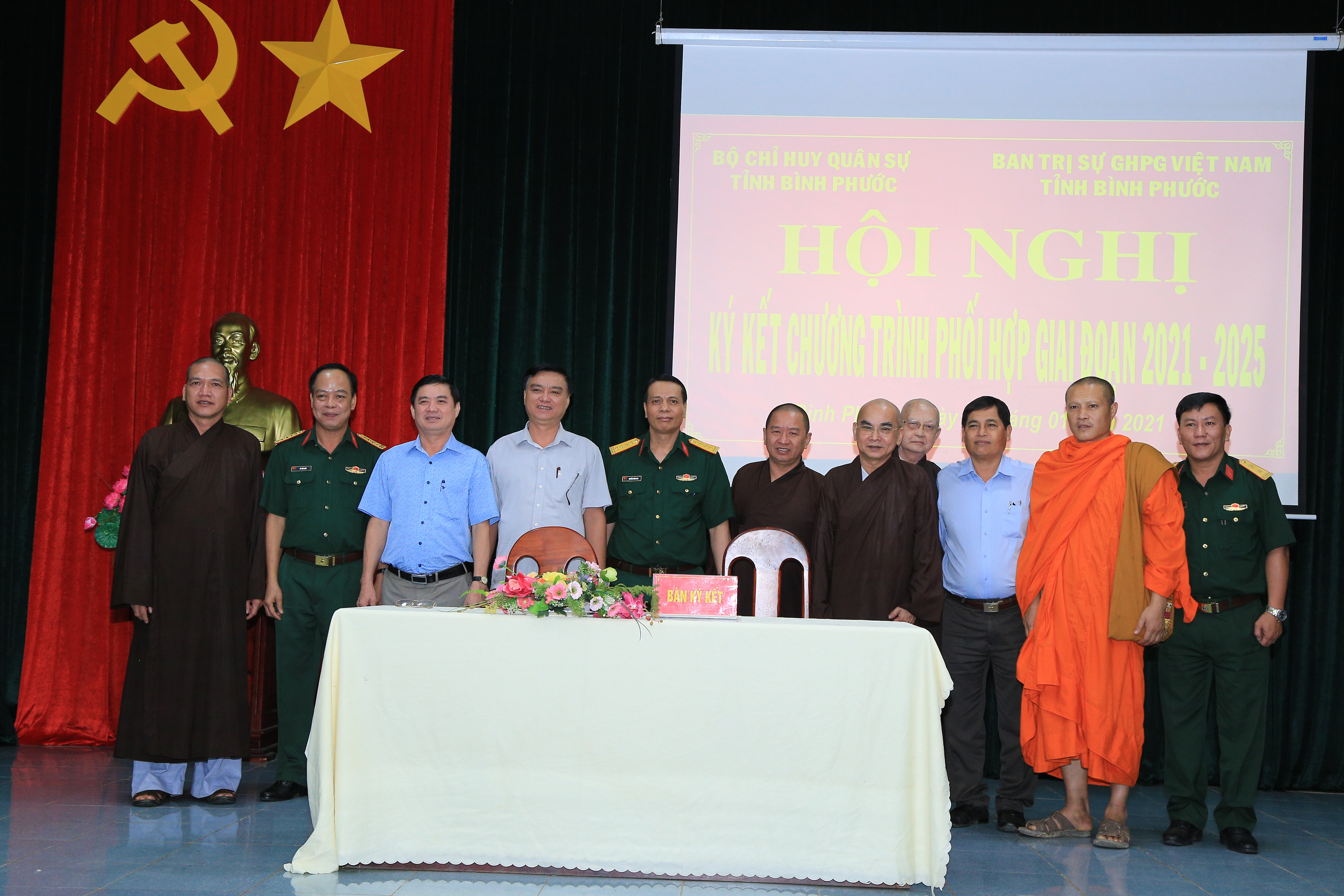 Bộ CHQS tinh Bình Phước và Ban Trị sự GHPGVN tỉnh ký kết chương trình phối hợp hoạt động giai đoạn 2021 - 2025.