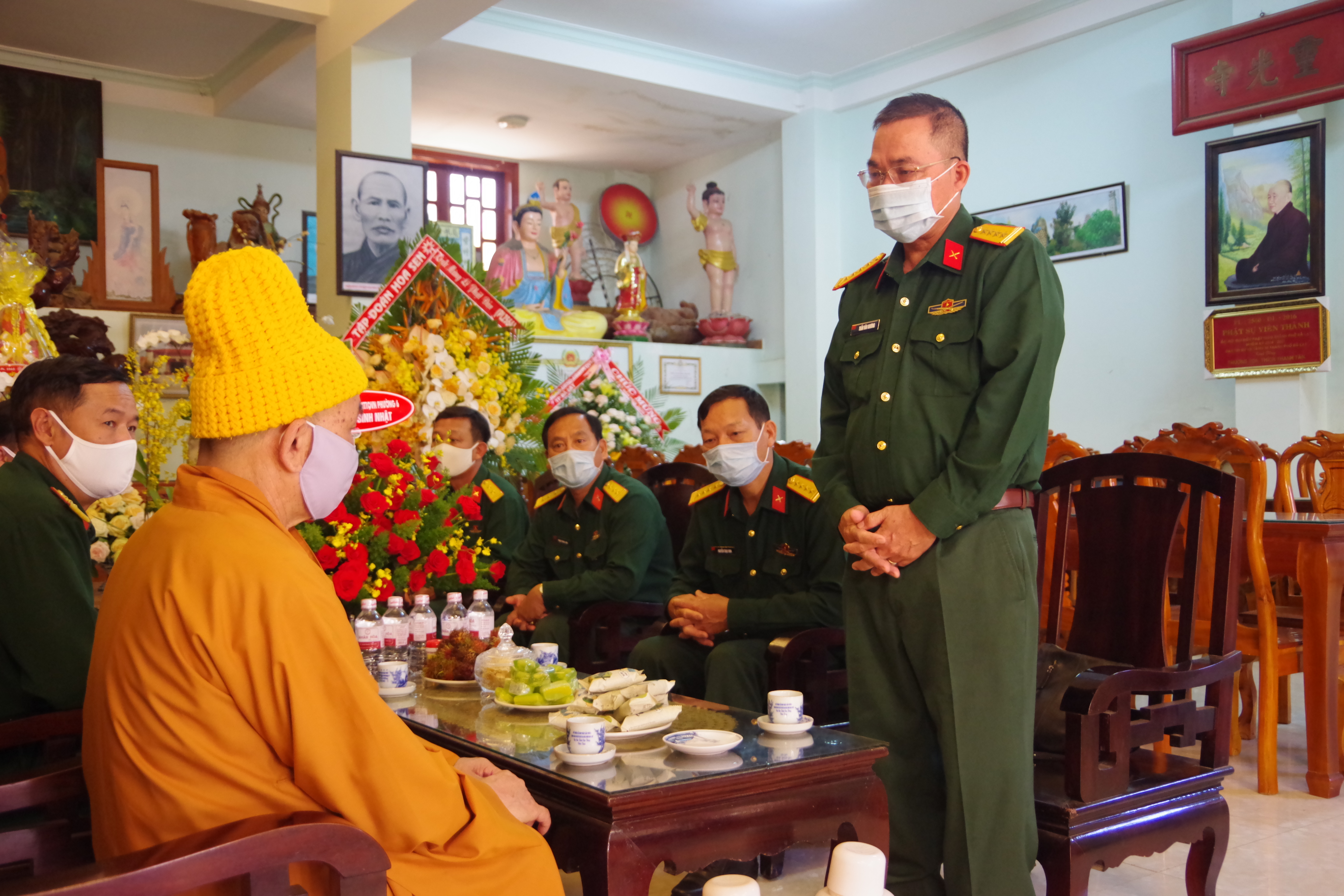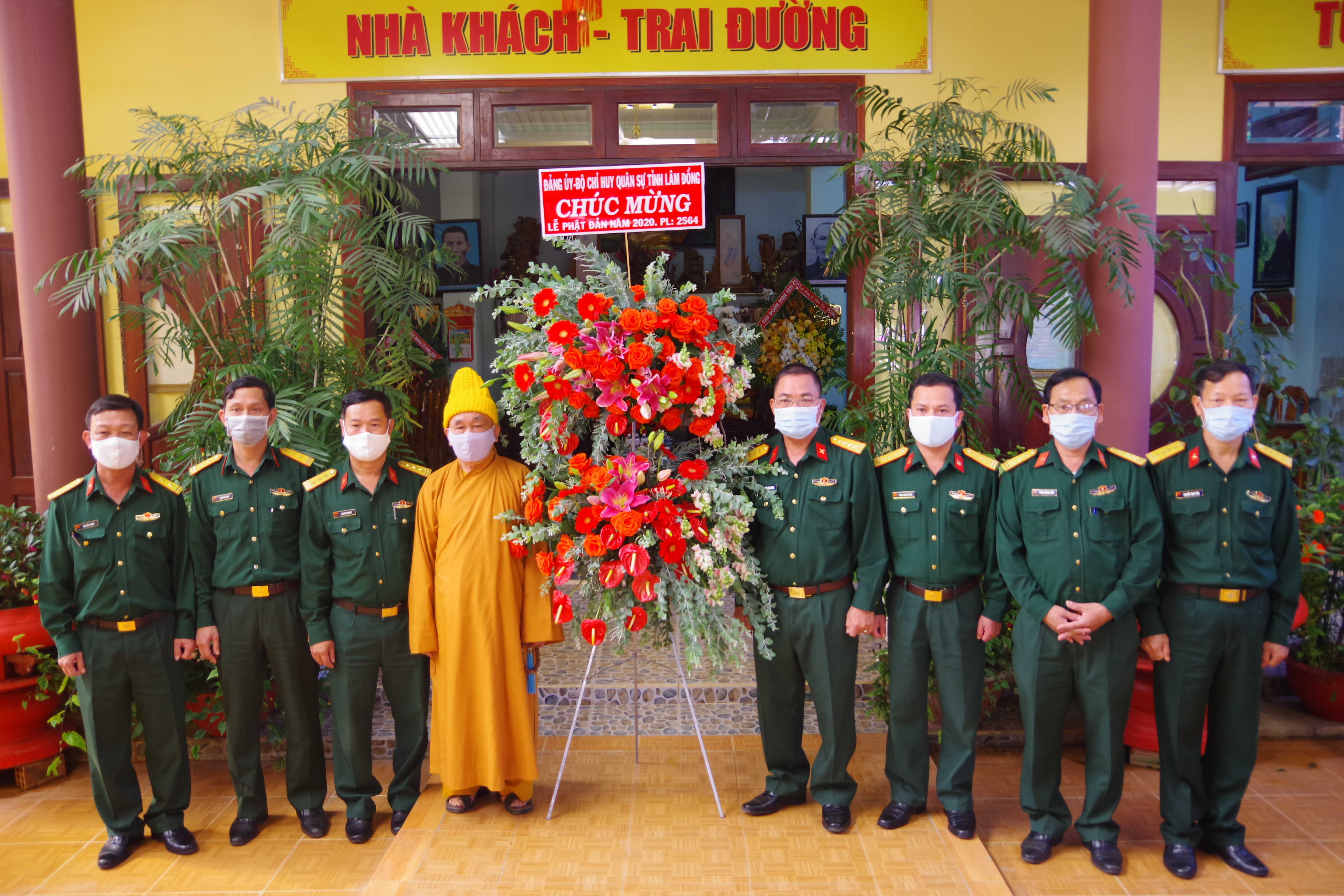 Thay mặt đoàn, Đại tá Trần Văn Khương, Chính ủy Bộ CHQS tỉnh đã thăm hỏi và gửi lời chúc tốt đẹp nhất tới các vị chức sắc, tăng ni, phật tử nhân dịp Lễ Phật Đản năm 2020; chúc các vị chức sắc, tăng ni, phật tử đón một mùa Phật Đản an vui, thắm tình đạo vị. Đồng thời đánh giá cao sự đóng góp của cộng đồng Phật giáo trong thời gian qua đã tổ chức nhiều hoạt động thiết thực, ý nghĩa hỗ trợ người có hoàn cảnh khó khăn bởi dịch bệnh Covid-19. Qua đó cũng tin tưởng đồng bào Phật giáo tiếp tục thực hiện tốt phương châm sống tốt đời, đẹp đạo, không ngừng phát huy truyền thống tốt đẹp của Phật giáo Việt Nam góp phần vào sự nghiệp xây dựng khối đại đoàn kết toàn dân ngày càng vững mạnh.