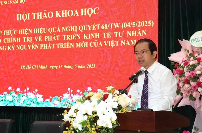 PGS.TS Vũ Tuấn Hưng, Viện trưởng Viện KHXH vùng Nam Bộ phát biểu tại Hội thảo: Giải pháp thực hiện hiệu quả Nghị quyết 68.
