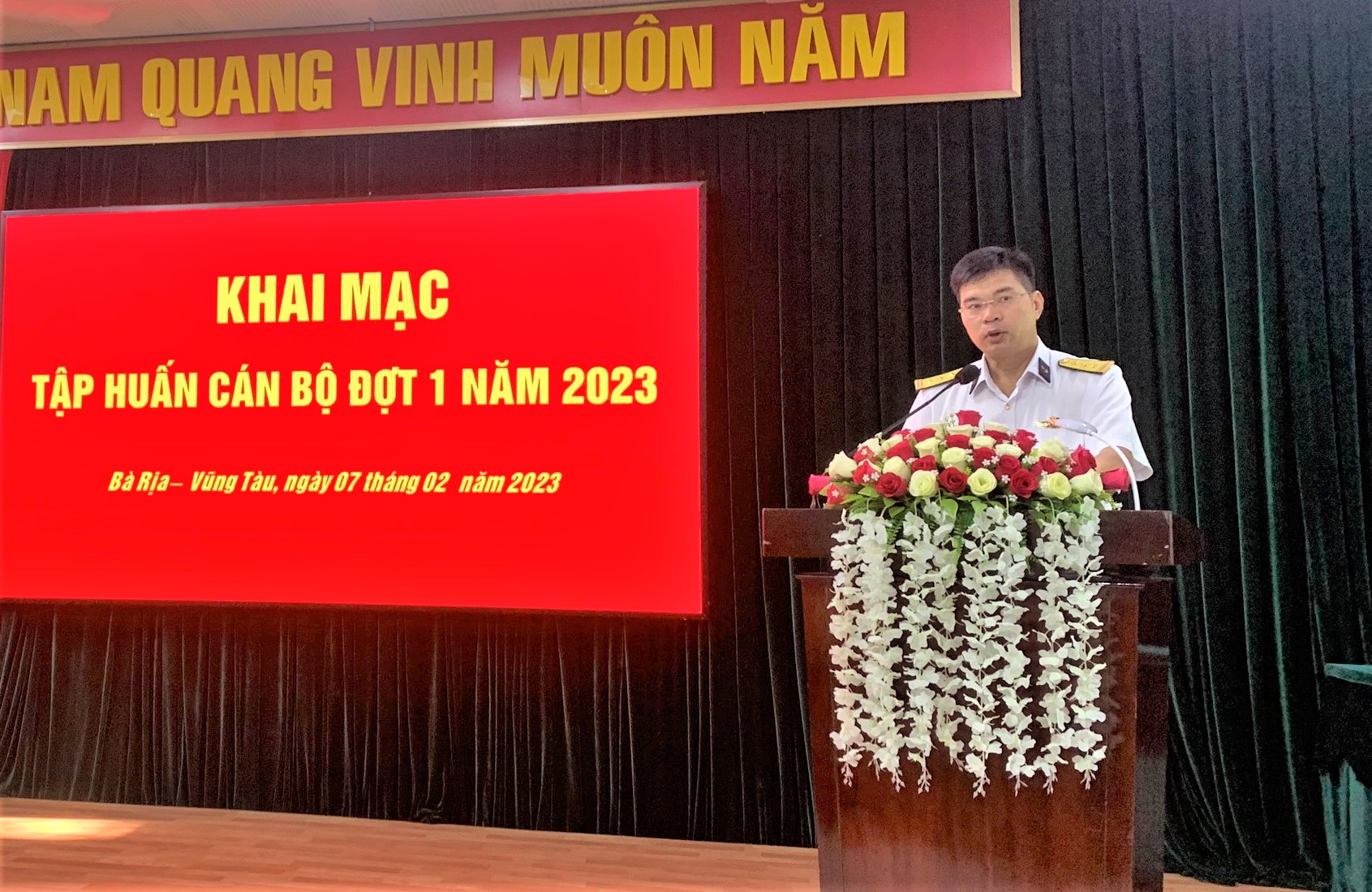 (QK7 Online) - Ngày 7/2, Lữ đoàn 167, Vùng 2 Hải quân tổ chức tập huấn cán bộ năm 2023. Thượng tá Phạm Tiến Dũng, Lữ đoàn trưởng dự và chỉ đạo lớp tập huấn. Tham gia tập huấn có hơn 150 đồng chí là cán bộ, sĩ quan toàn Lữ đoàn, QNCN giữ chức danh từ tiểu đội trưởng, khẩu đội trưởng, đài trưởng trở lên.