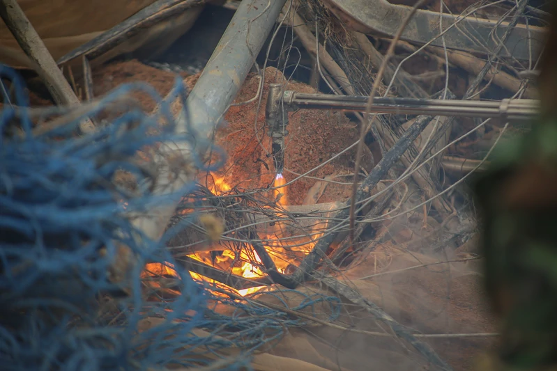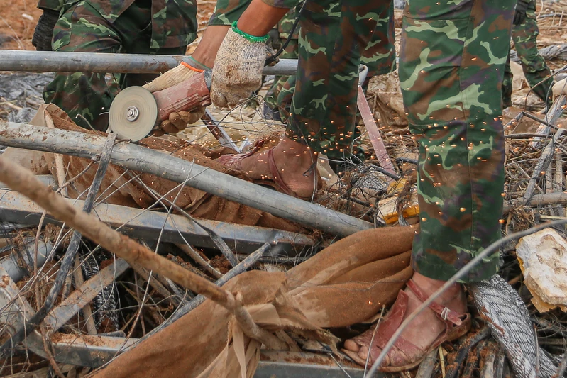 Cảnh hoang tàn của khu vực nhà lưới của ông Hà Di Du, được bộ đội Lữ đoàn 25 thu dọn.