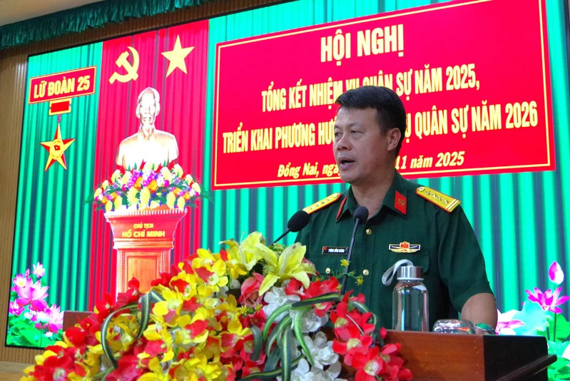 (QK7 Online) - Chiều 6/11, Đảng ủy Lữ đoàn 25 tổ chức hội nghị phiên cuối năm nhằm đánh giá kết quả lãnh đạo thực hiện nhiệm vụ năm 2025 và đề ra phương hướng, chỉ tiêu thực hiện nhiệm vụ năm 2026. Thiếu tướng Trần Ngọc Minh, Ủy viên Thường vụ Đảng ủy, Phó Tư lệnh Quân khu dự và phát biểu chỉ đạo.