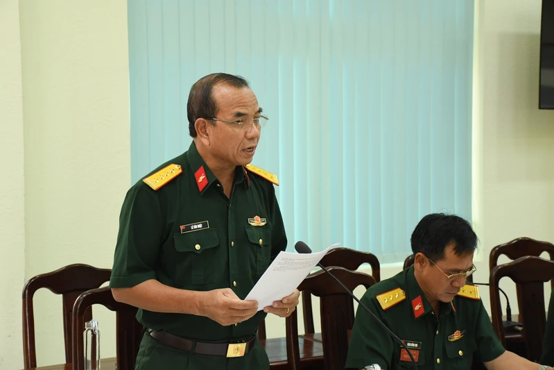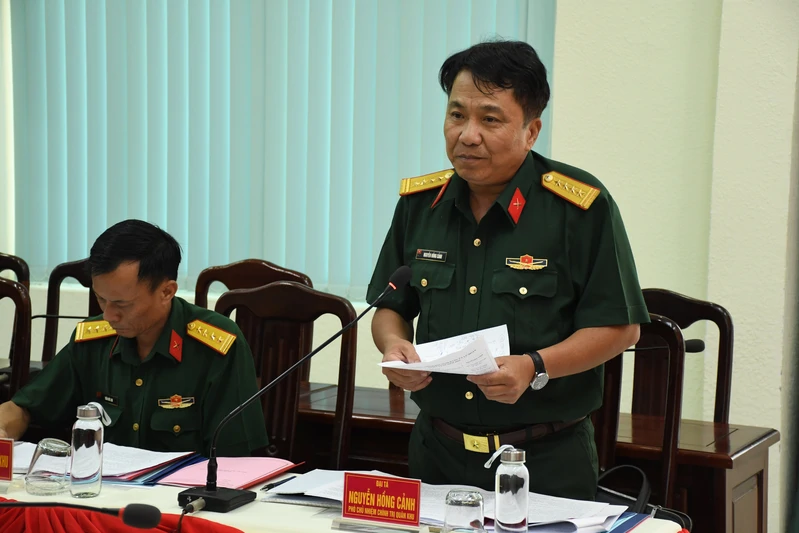 Đại tá Nguyễn Hồng Cảnh, Phó Chủ nhiệm Chính trị Quân khu dự, phát biểu chỉ đạo.