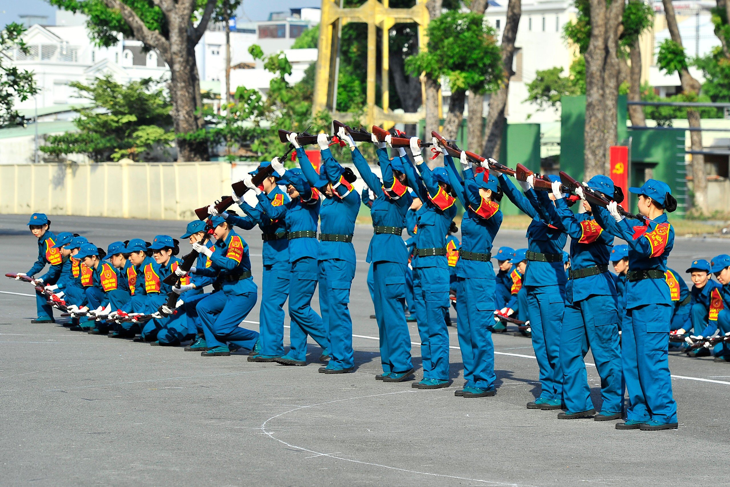 Nữ tự vệ TPHCM biểu diễn múa súng.