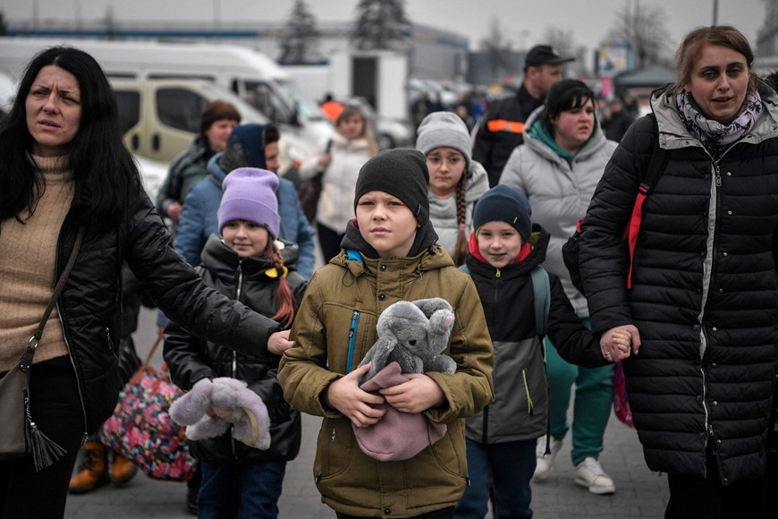 Người tị nạn Ukraine chờ làm thủ tục đăng ký tại một trung tâm tạm trú ở Przemysl, Ba Lan. Ảnh: AFP.