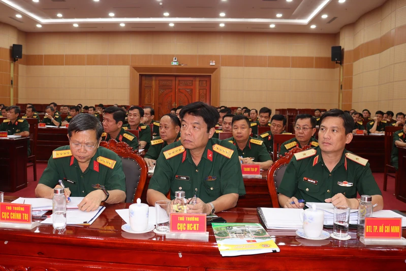 Từ trái qua: Đại tá Nguyễn Văn Lộc, Phó Chủ nhiệm Chính trị Quân khu; Đại tá Lê Chí Dũng, Phó Chủ nhiệm Hậu cần - Kỹ thuật Quân khu; Thiếu tướng Phan Quốc Việt, Phó Tư lệnh, Tham mưu trưởng Bộ Tư lệnh Thành phố Hồ Chí Minh dự hội nghị.