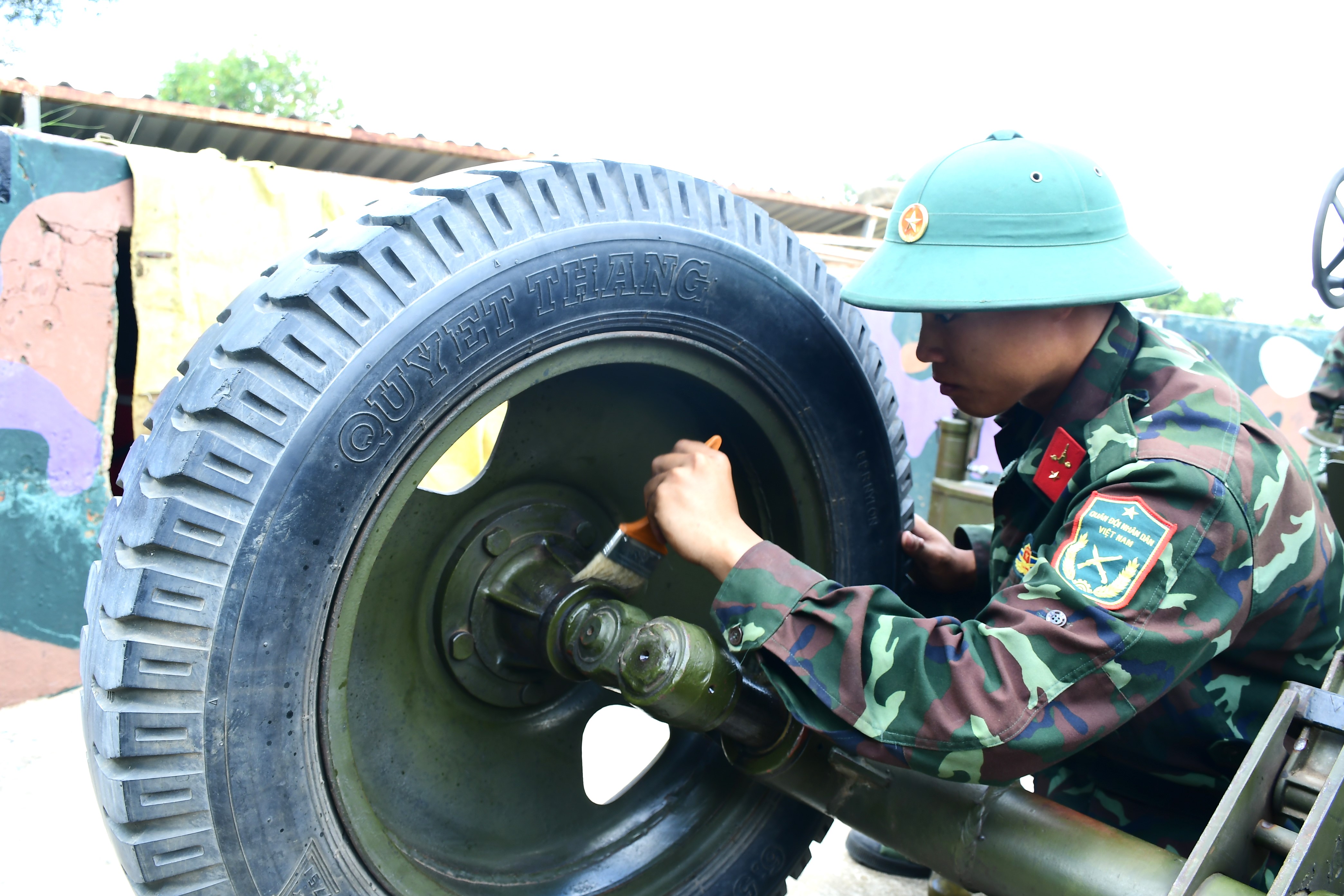 Chăm chút bảo dưỡng từng chi tiết pháo ngoài trận địa.