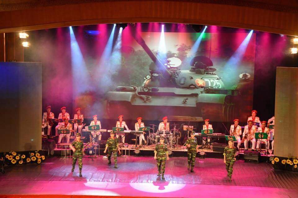 Các nghệ sỹ Đoàn Văn công Quân khu biểu diễn ca khúc "Miền Đông khúc khải hoàn ca" do Nhạc sỹ Thiên Lan sáng tác.