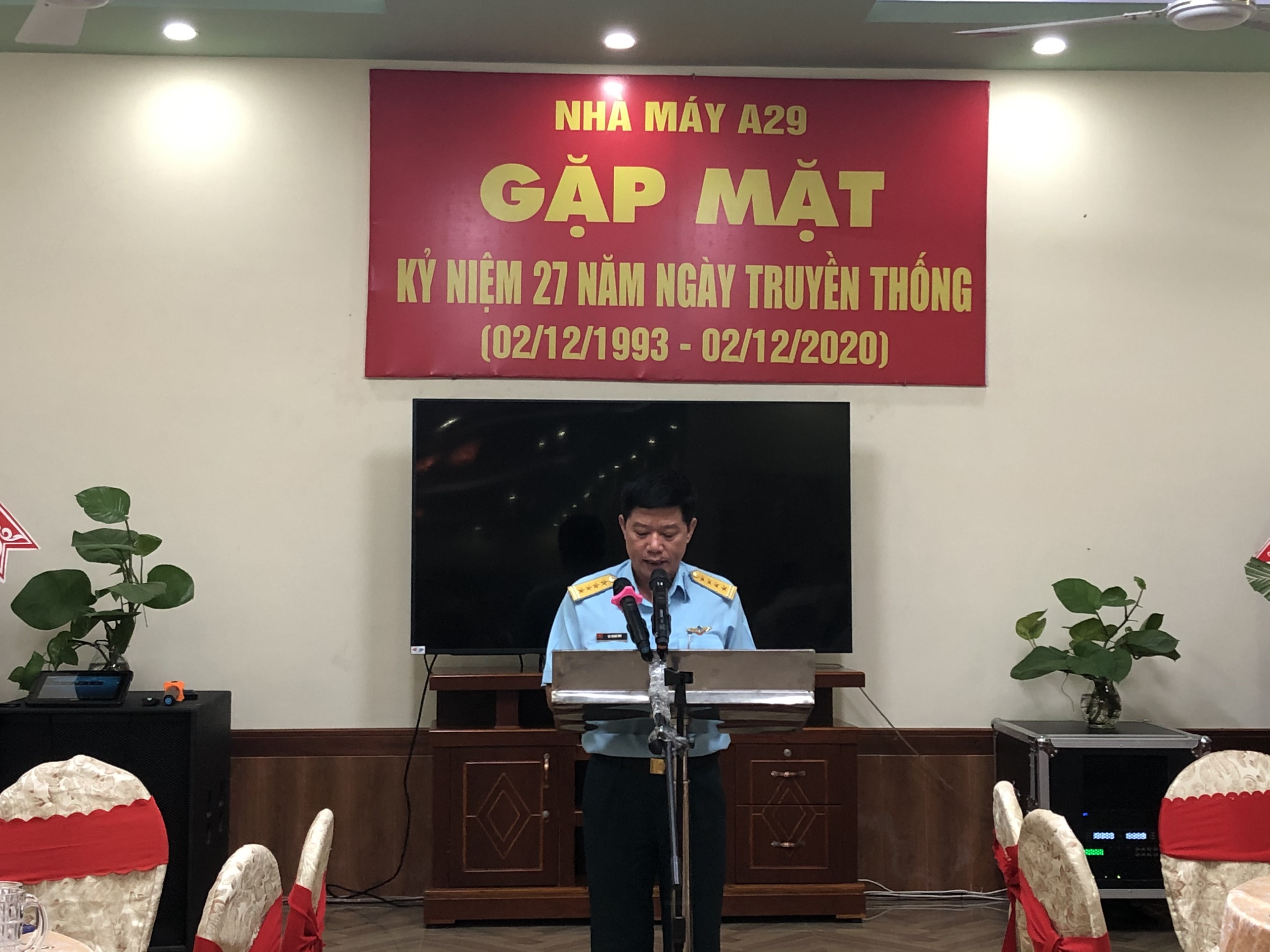 Tại buổi họp mặt, các đại biểu cùng ôn lại truyền thống 27 năm ngày thành lập đơn vị. Đại Bùi Quang Vinh, Bí thư Đảng ủy, Chính ủy nhà máy cho biết, ngày 2-12-1993, trước yêu cầu, nhiệm vụ xây dựng và bảo vệ Tổ quốc trong tình hình mới, Quân chủng PKKQ quyết định thành lập Nhà máy quốc phòng A29. Đây là đơn vị có chức năng sửa chữa tổng hợp, sửa chữa, đồng bộ các loại vũ khí trang bị kỹ thuật phòng không cho các đơn vị thuộc Quân chủng, các Quân khu, Quân đoàn, quân, binh chủng từ phía Nam đèo Hải Vân trở vào.