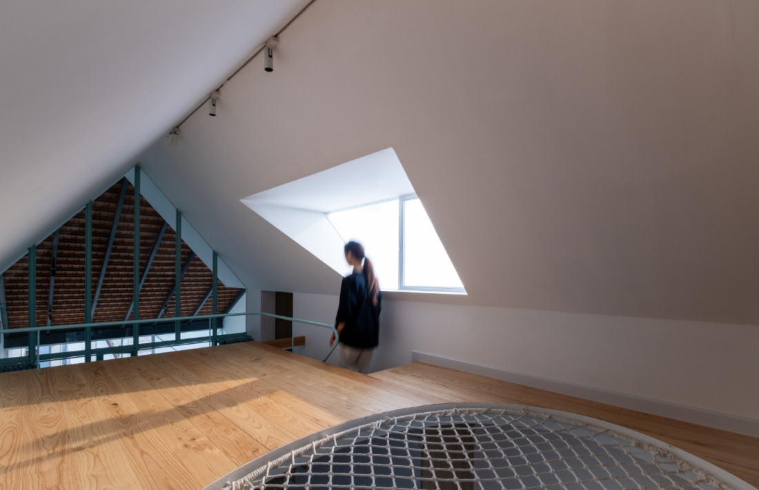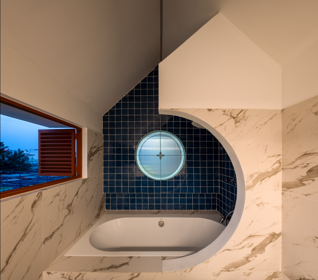 Ngước mắt lên, bạn sẽ thấy mái dốc – một chi tiết gợi nhớ ngay đến hình ảnh ngôi nhà quê xưa. Đó là nơi lưu giữ ký ức về bà, về mẹ, về những buổi chiều mưa rả rích dưới mái ngói nghiêng.