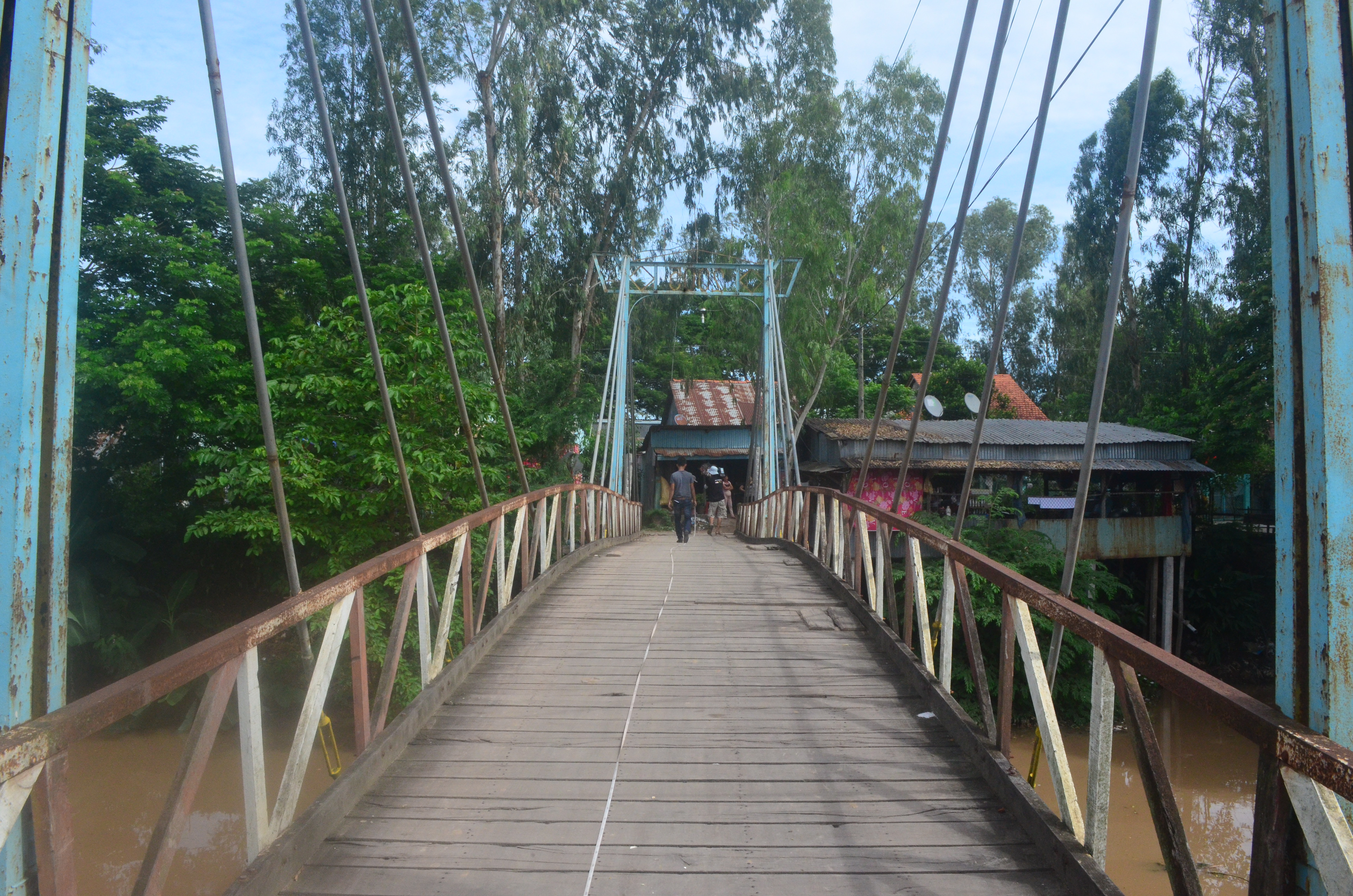 Cầu Xẻo Su mặc dù đã xuống cấp và hư hỏng nhưng hằng ngày vẫn có hàng ngàn lượt người dân qua lại.