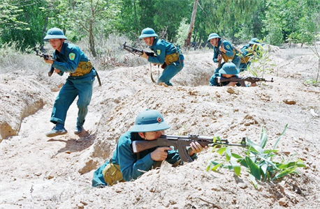 Lực lượng dân quân tham gia diễn tập phối hợp với quân chủ lực.