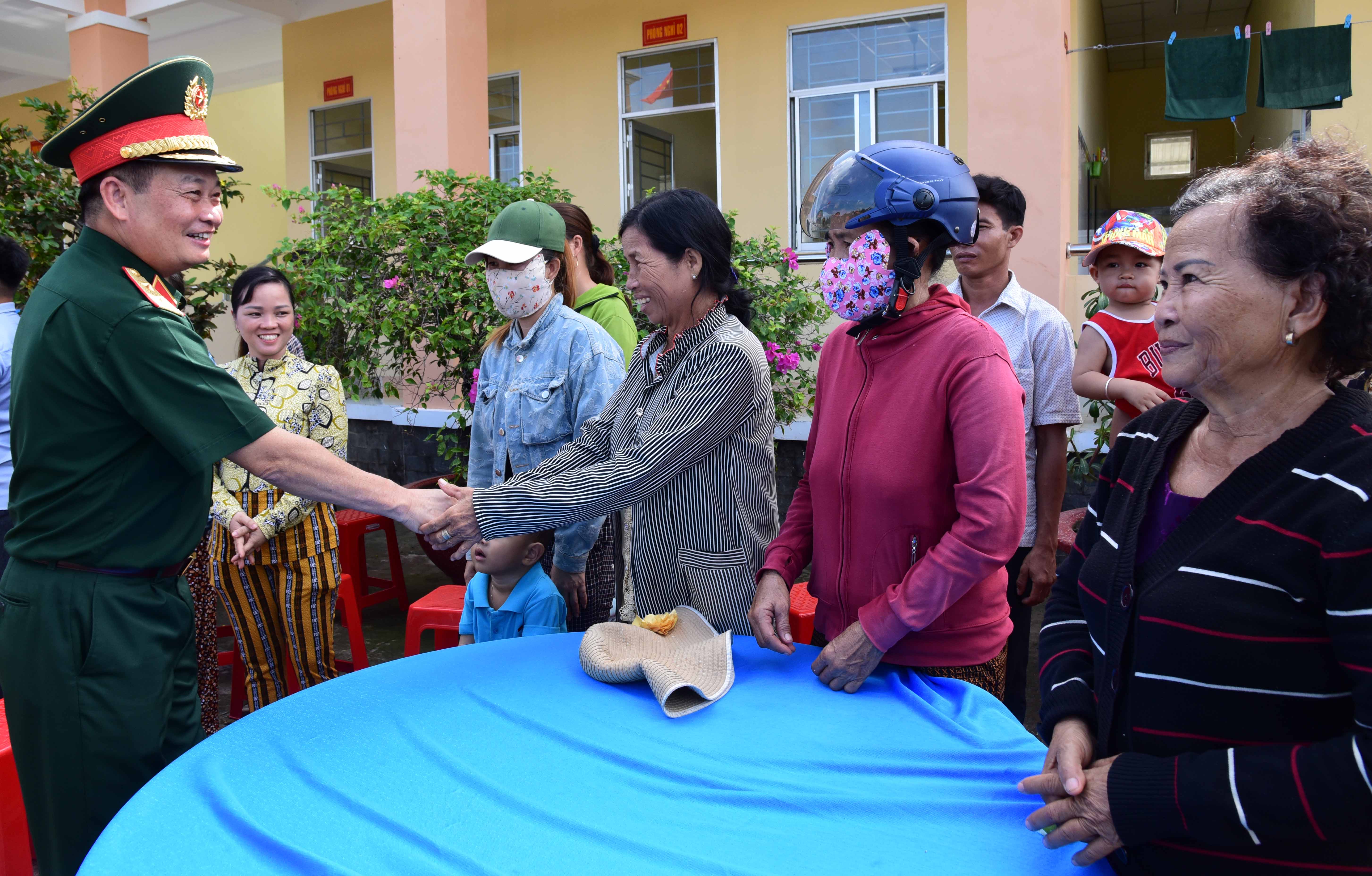 Trung tướng Trần Hoài Trung, Bí thư Đảng ủy, Chính ủy Quân khu 7 thăm hỏi các hộ dân tại Điểm dân cư liền kề chốt dân quân biên giới xã Mỹ Bình, huyện Đức Huệ, tỉnh Long An.