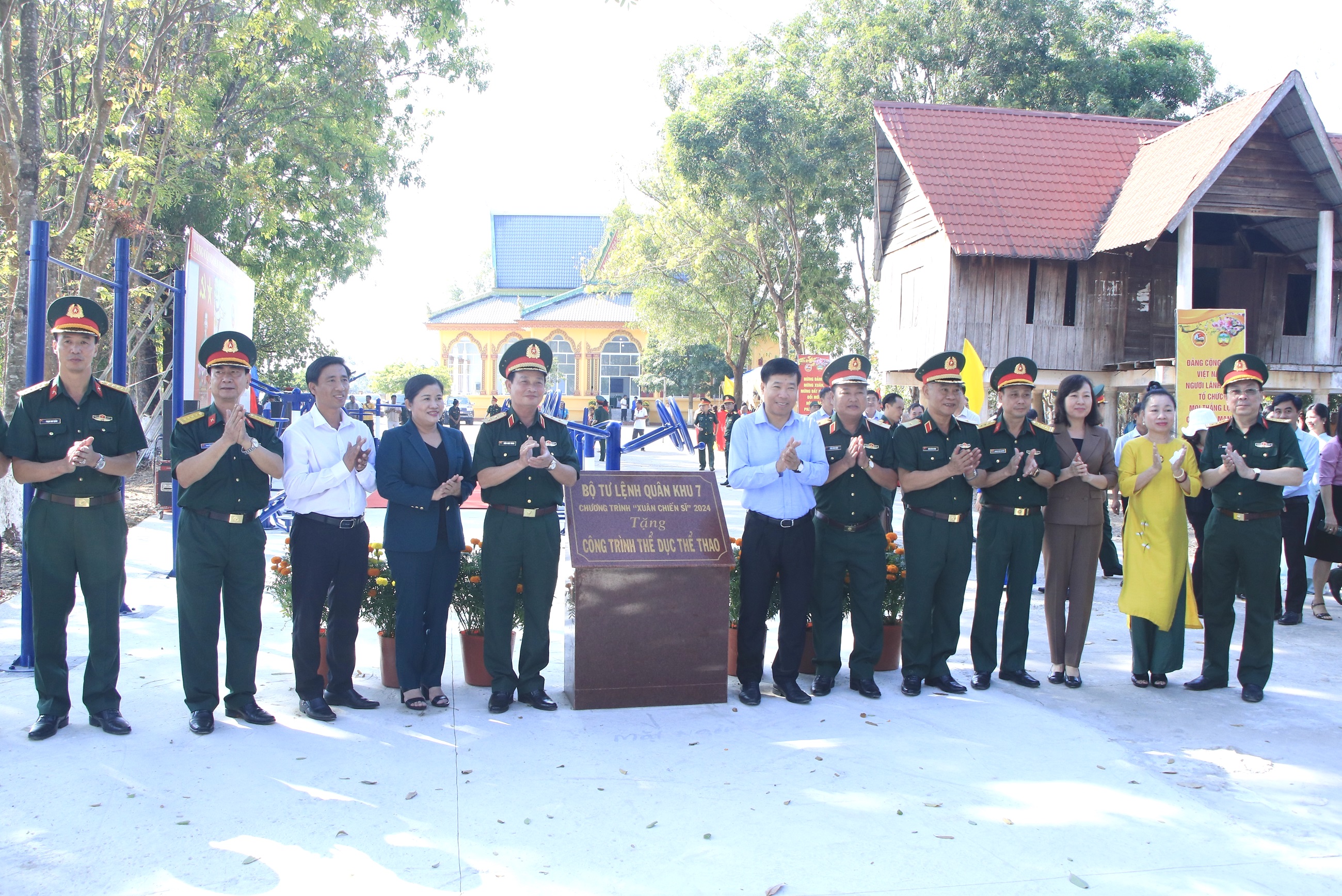 Thủ trưởng Bộ Tư lệnh Quân khu 7 và lãnh đạo tỉnh Bình Phước cắt băng khánh thành công trình TDTT ngoài trời tại huyện Lộc Ninh, tỉnh Bình Phước.