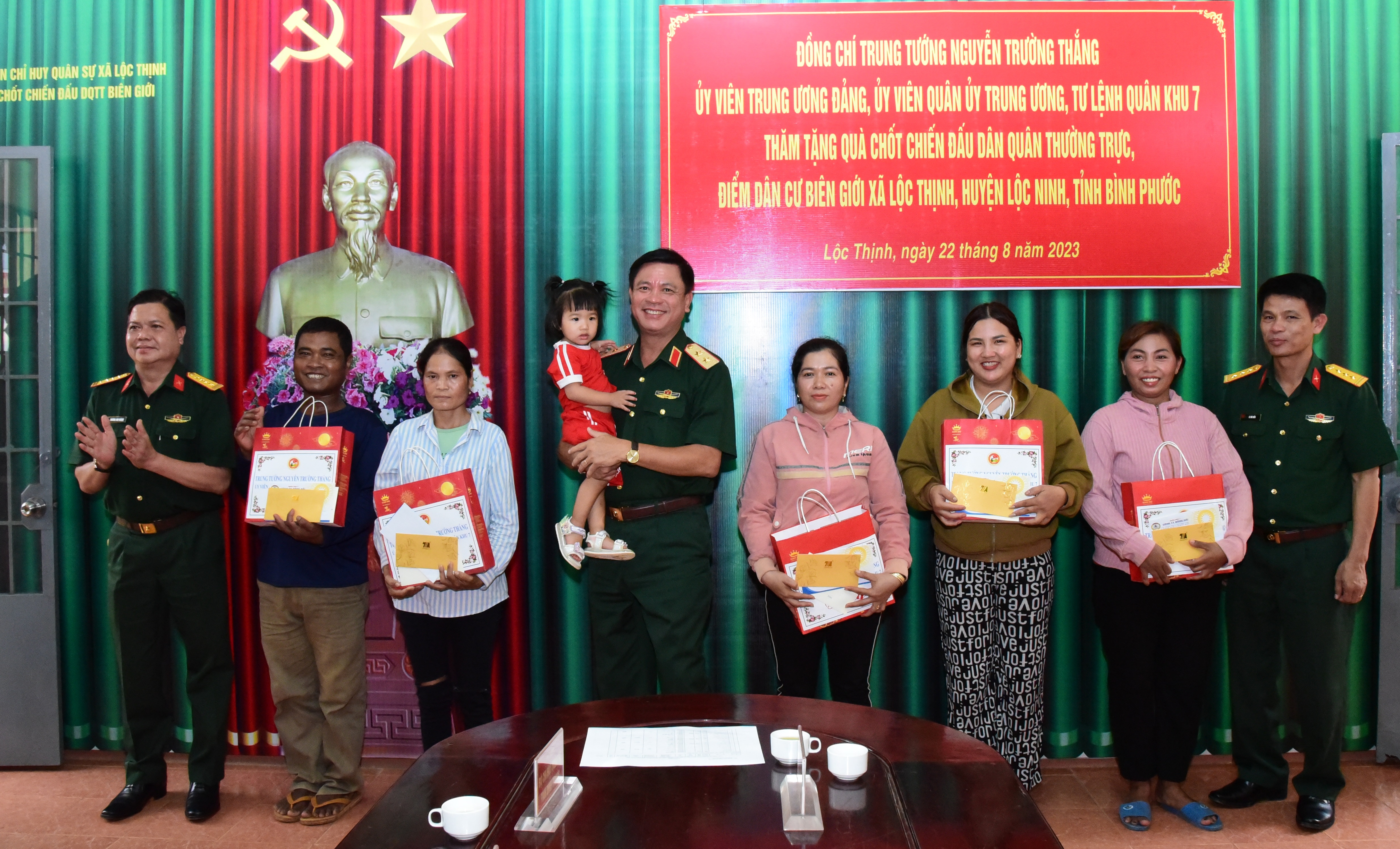Trung tướng Nguyễn Trường Thắng, Ủy viên Trung ương Đảng, Tư lệnh Quân khu 7 thăm, tặng quà bà con Điểm dân cư liền kề chốt dân quân xã Lộc Thịnh, huyện Lộc Ninh, tỉnh Bình Phước