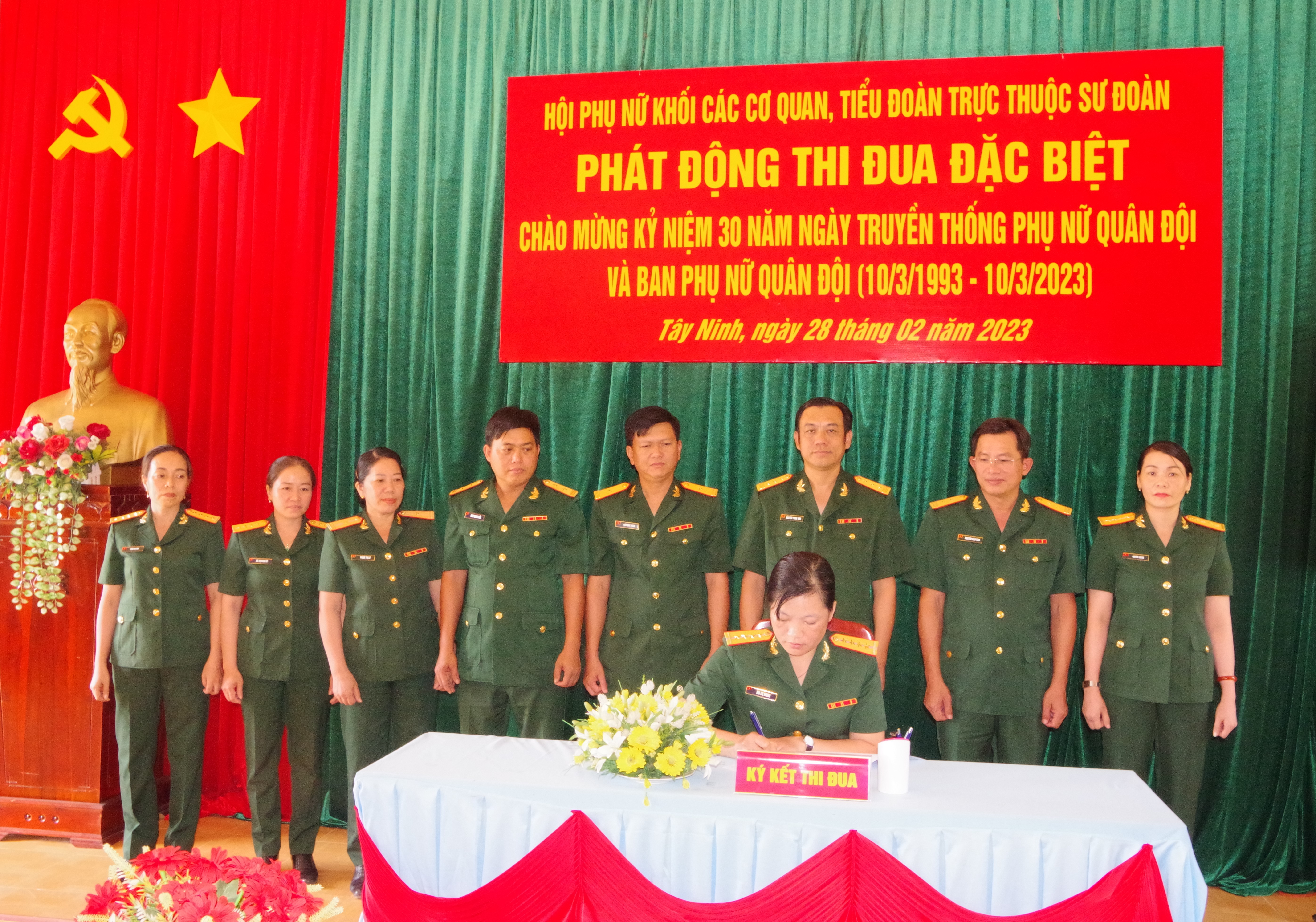 Hội phụ nữ khối các cơ quan, tiểu đoàn trực thuộc Sư đoàn 5 ký kết thi đua.