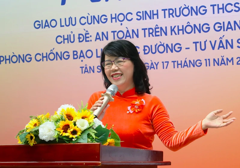 (QK7 Online) - Sáng 17/11, phường Tân Sơn Hòa, Thành phố Hồ Chí Minh, phối hợp các đơn vị đồng hành tổ chức chương trình giao lưu với học sinh trường THCS Ngô Sĩ Liên. Đồng chí Trương Lê Mỹ Ngọc, Bí thư Đảng ủy, Chủ tịch Hội đồng nhân dân phường dự chương trình.