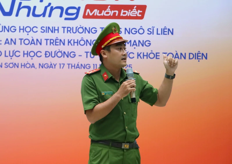 Công an phường Tân Sơn Hòa tuyên truyền chủ đề an toàn không gian mạng, phòng chống bạo lực học đường tới các em học sinh.