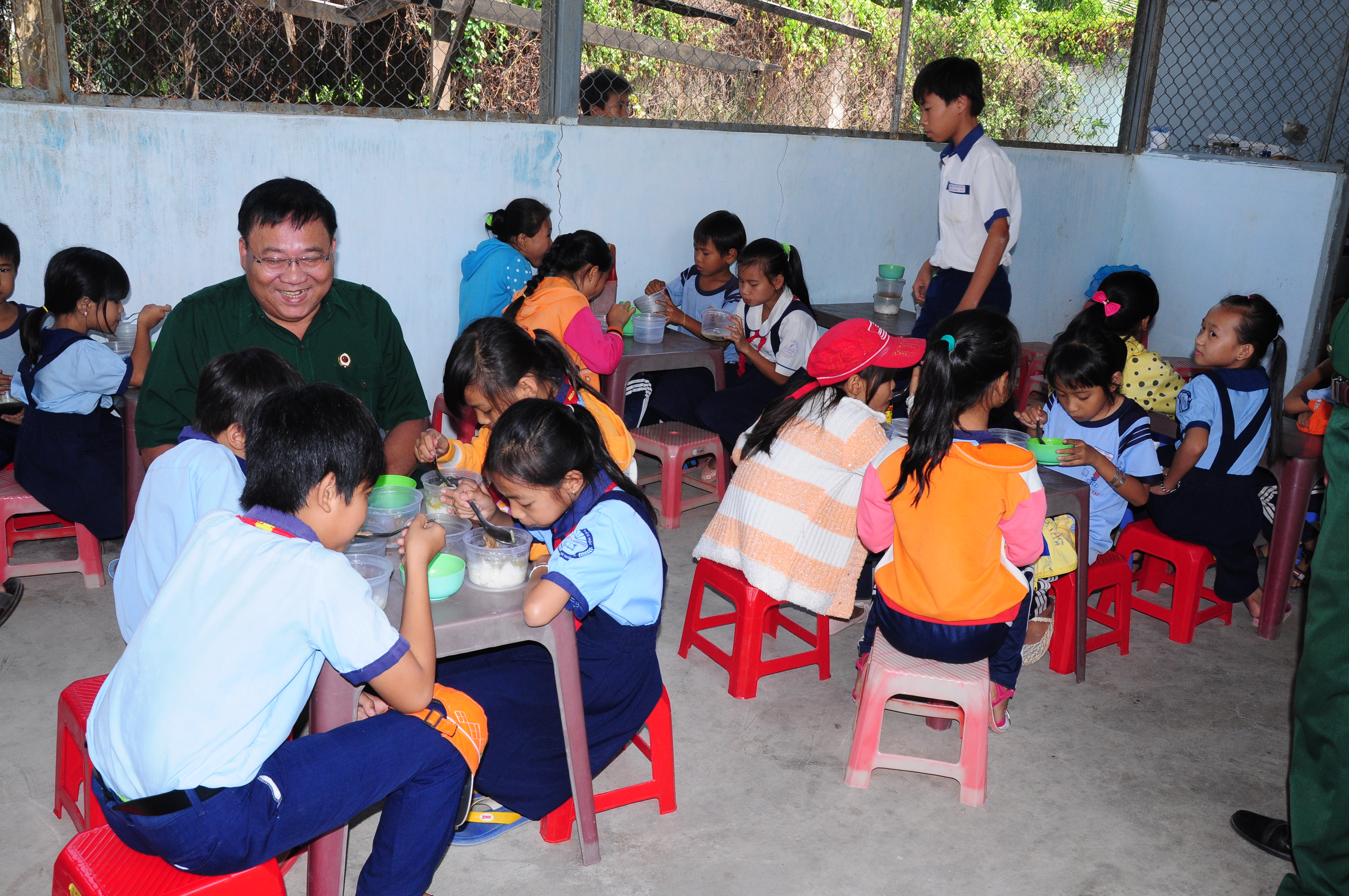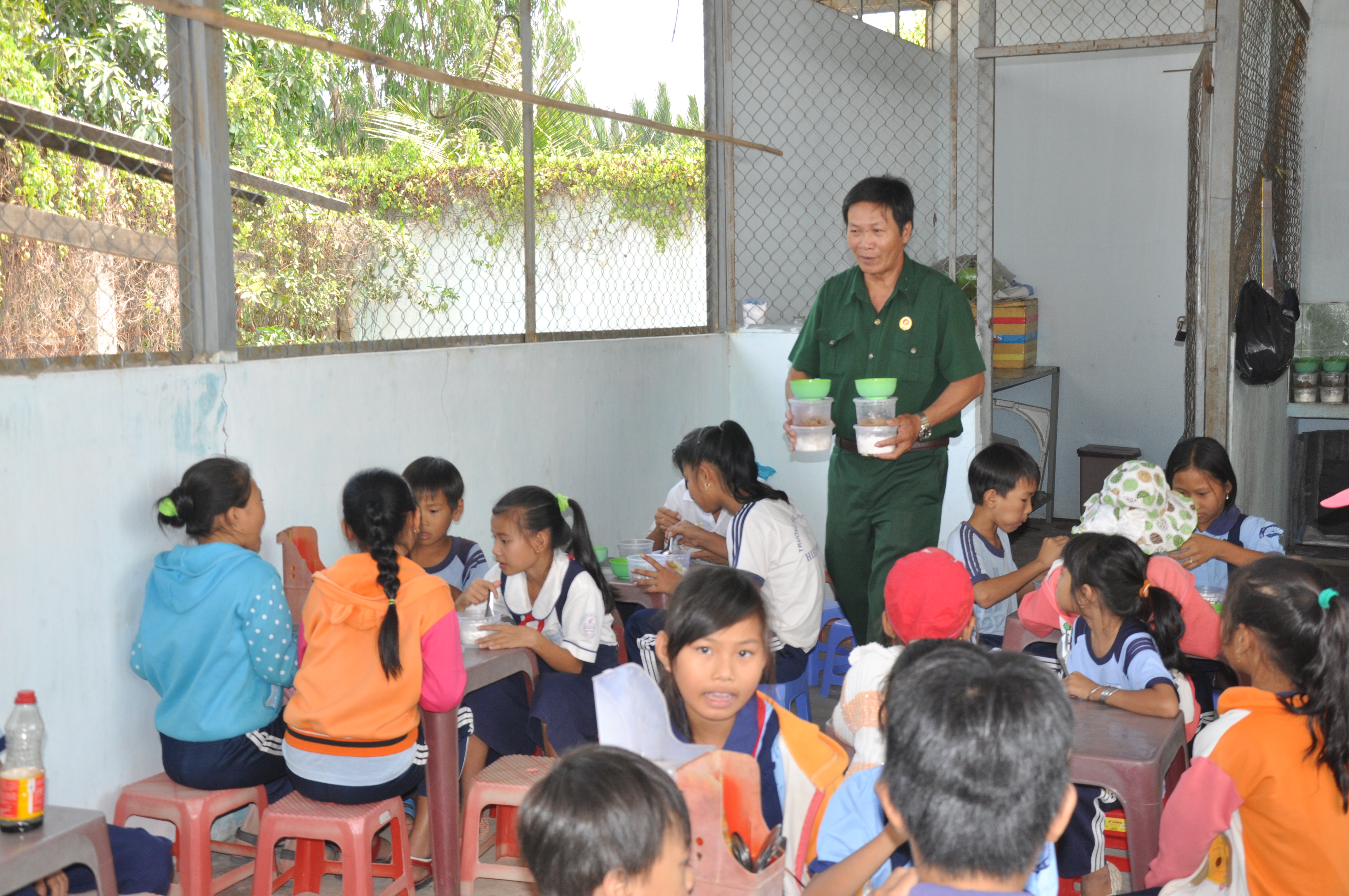 Ông Tám Diên tâm sự: Những ngày tôi còn làm việc ở ủy ban xã tôi đã nhiều lần chứng kiến cảnh các cháu học sinh ở xùng sâu, vùng xa của xã sau khi tan học buổi trưa, các cháu đến quán cơm trước ủy ban mua cơm để ăn chờ đò, chờ ba mẹ đón về. Điều tôi thấy thật đau lòng khi các cháu chỉ đưa có 2.000 đồng để mua cơm.