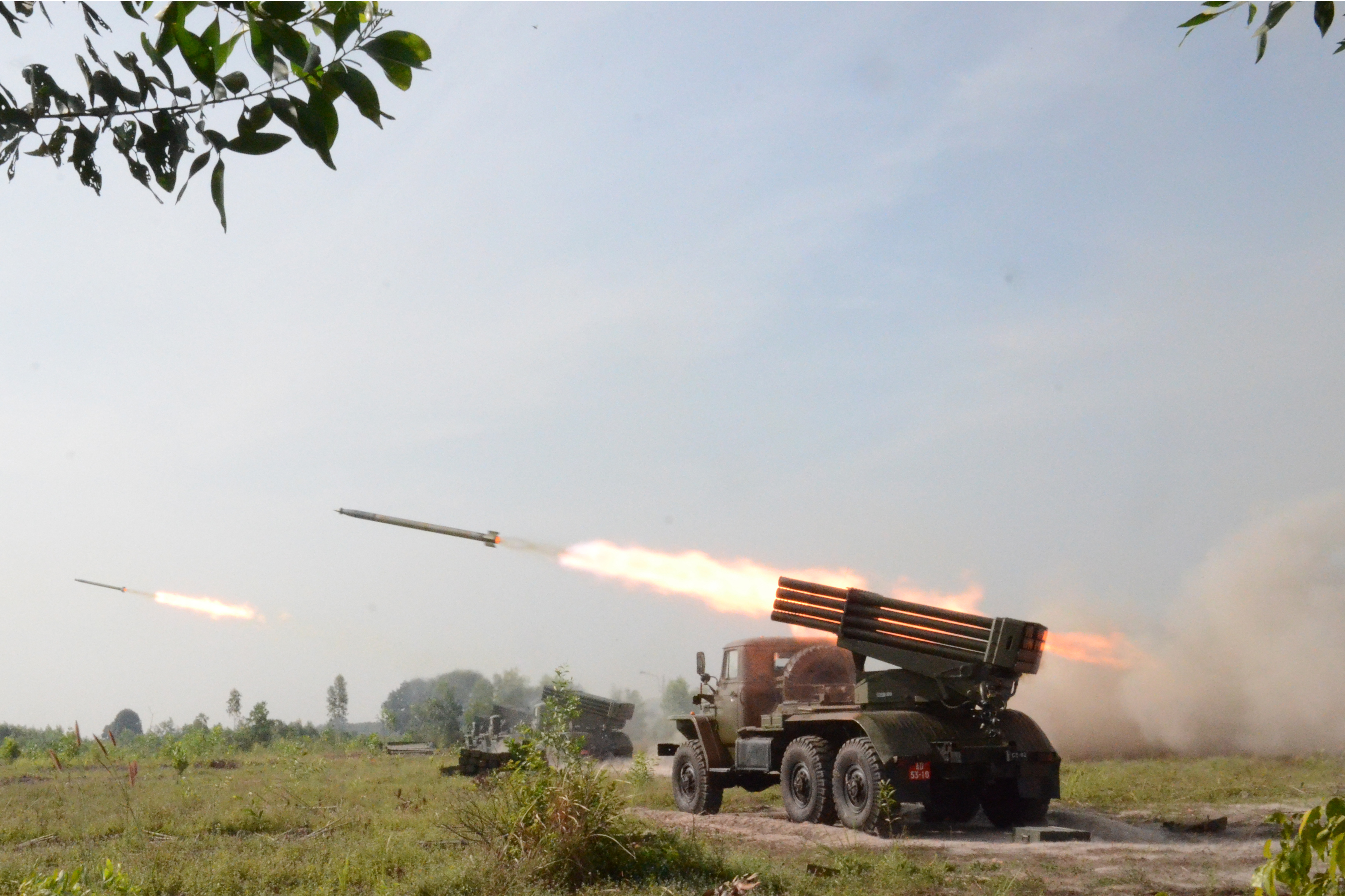 Pháo BM21 Lữ đoàn Pháo binh 434 tiêu diệt mục tiêu.