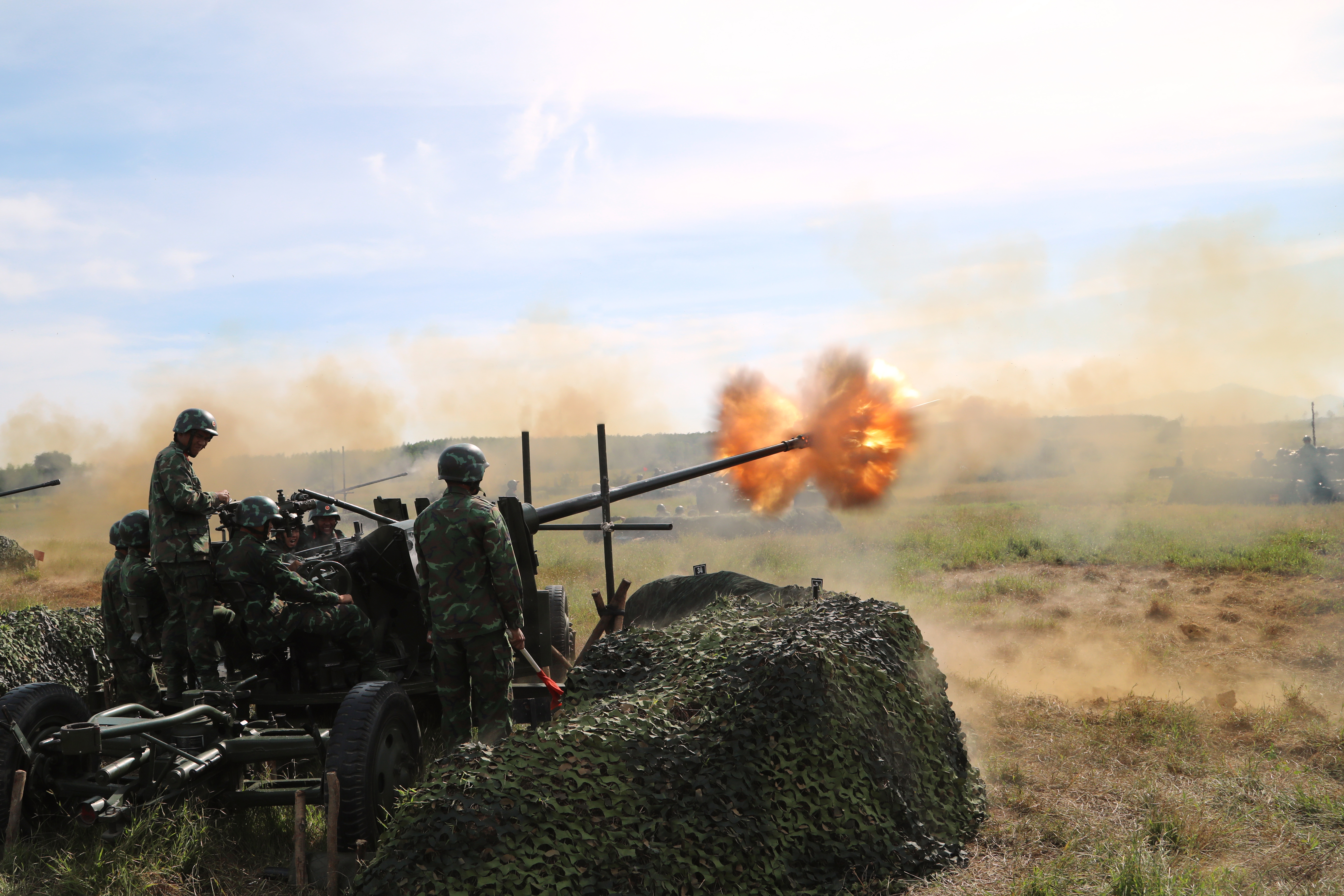 Pháo phòng không 57mm Lữ đoàn Phòng không 71 tiêu diệt mục tiêu trong diễn tập.