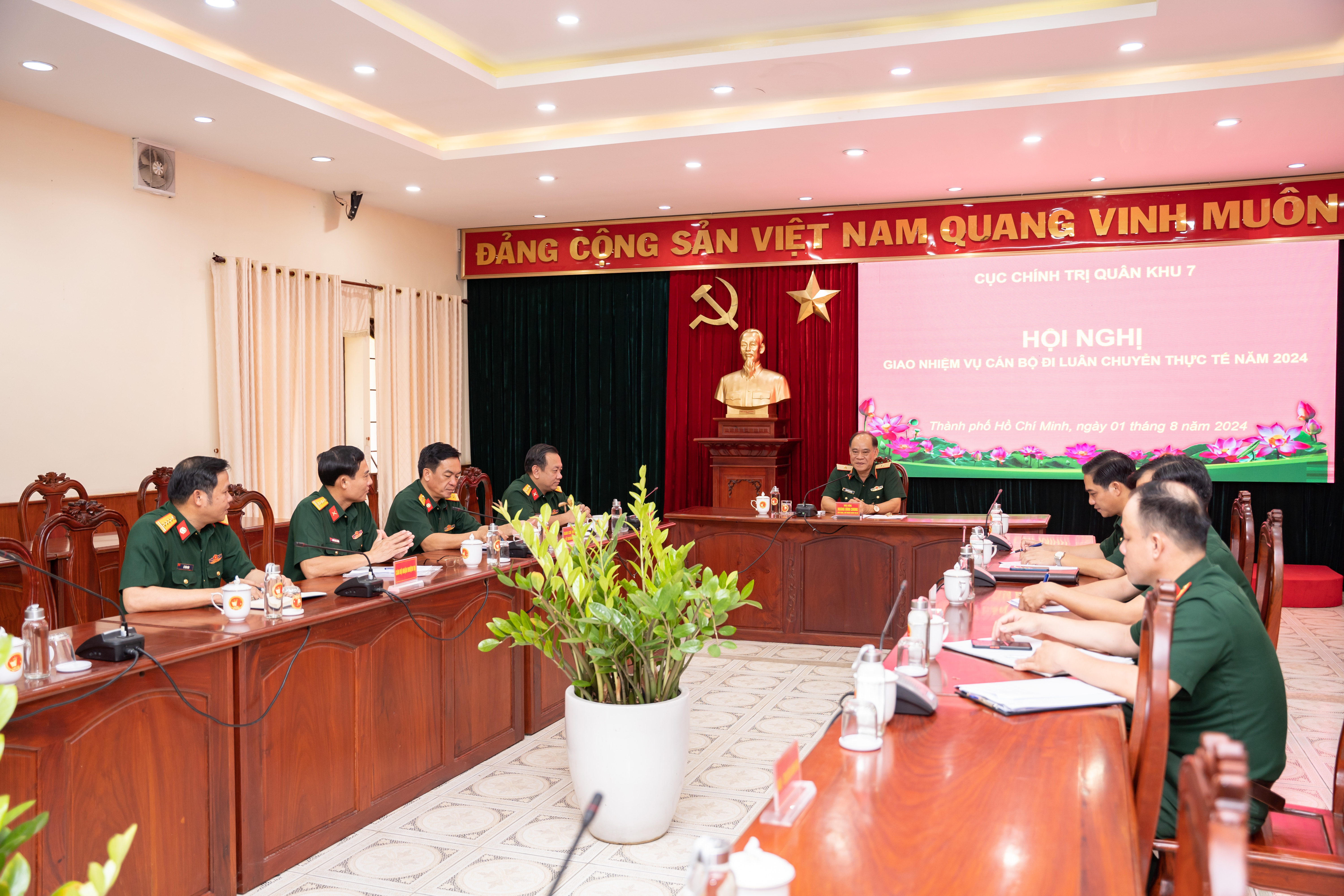 Tại buổi gặp mặt giao nhiệm vụ, Thiếu tướng Hoàng Đình Chung, Chủ nhiệm Chính trị Quân khu chúc mừng các đồng chí được thủ trưởng các cấp quan tâm, tạo điều kiện đi thực tế để tích lũy thêm kinh nghiệm, đồng thời giới thiệu khái quát về tình hình quân sự quốc phòng, an ninh chính trị, kinh tế, tôn giáo và các hoạt động nổi bật của LLVT Quân khu 7 trong thời gian qua.