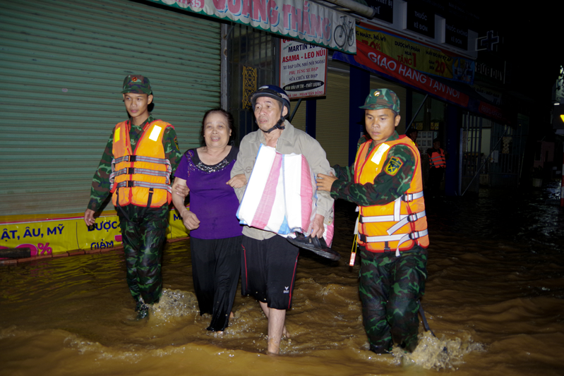 Cán bộ, chiến sĩ LLVT Quân khu 7 vận chuyển, sơ tán nhân dân trong đêm.