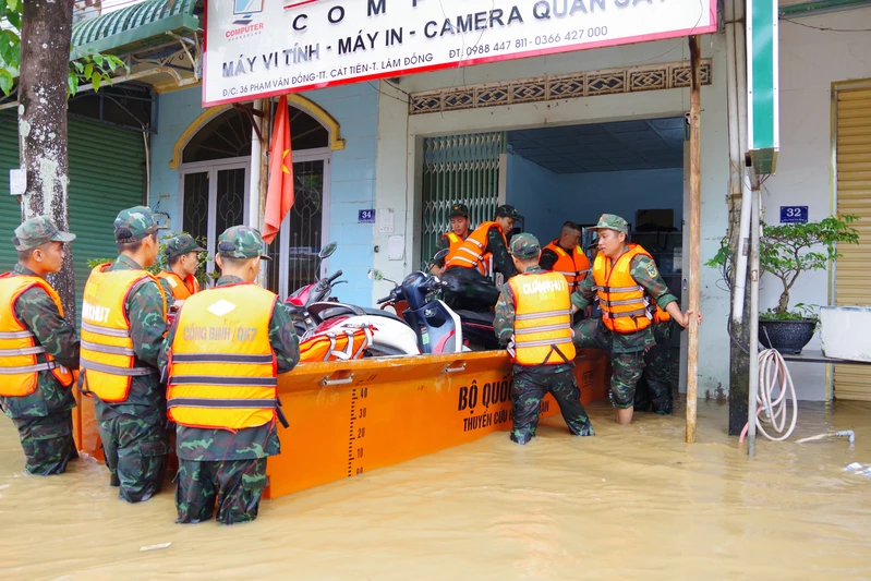 Lữ đoàn 25 cơ động lực lượng giúp tỉnh Lâm Đồng ứng phó với lũ lớn