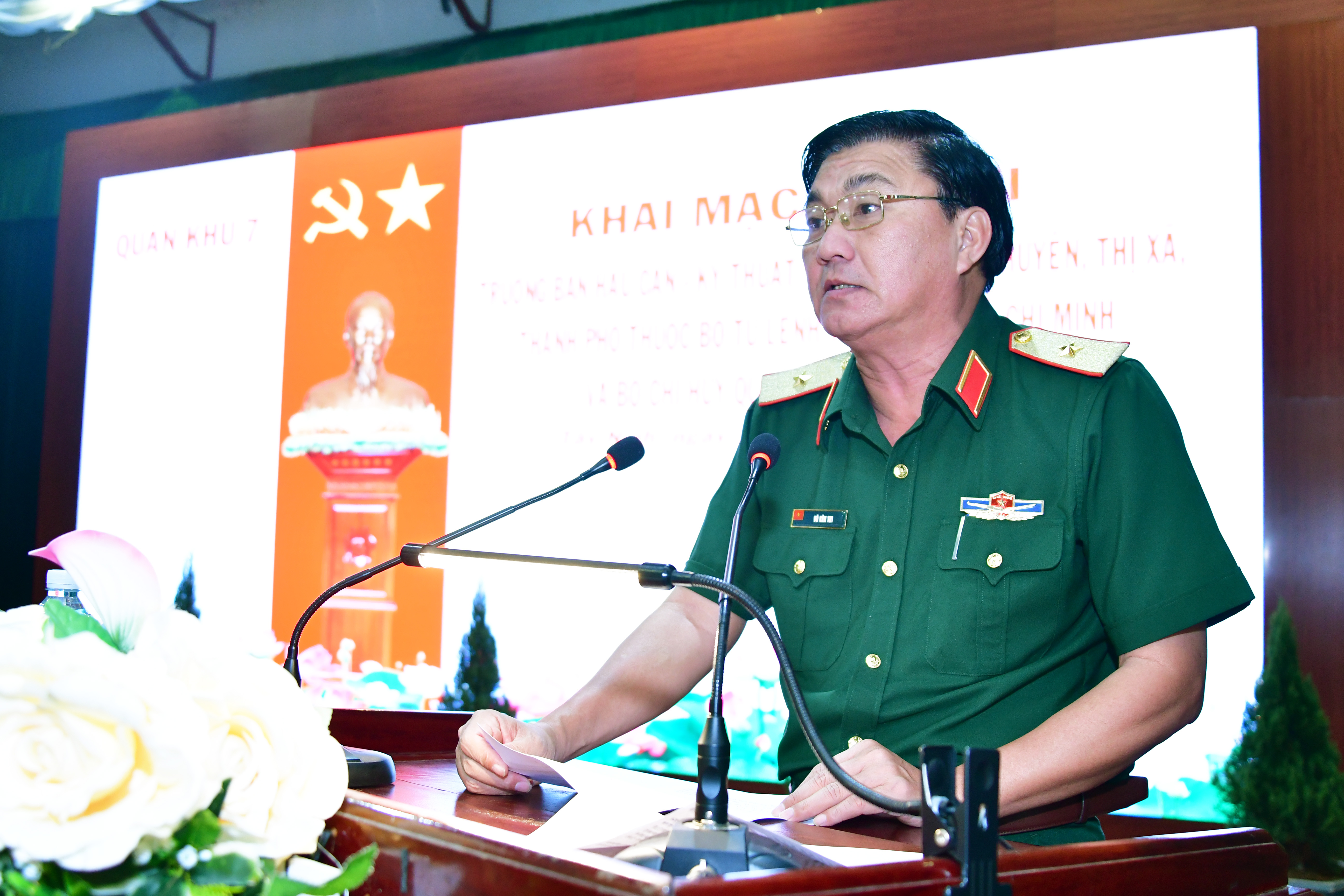 Thiếu tướng Võ Văn Thi, Phó Tư lệnh Quân khu 7 phát biểu khai mạc hội thi.