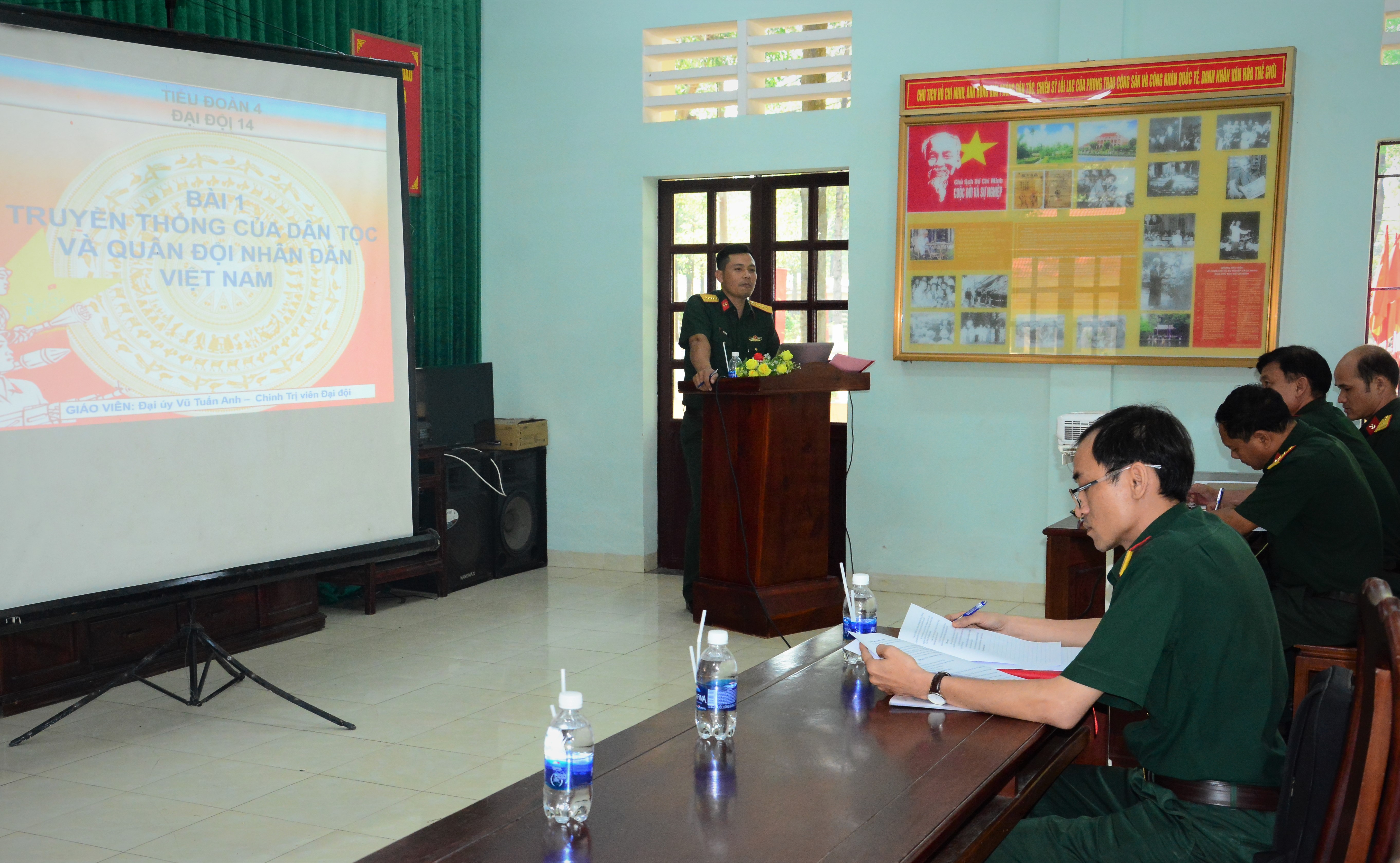 Kiểm tra nơi ở của chiến sĩ mới tại Đại đội 14, Tiểu đoàn 4, Lữ đoàn 25.