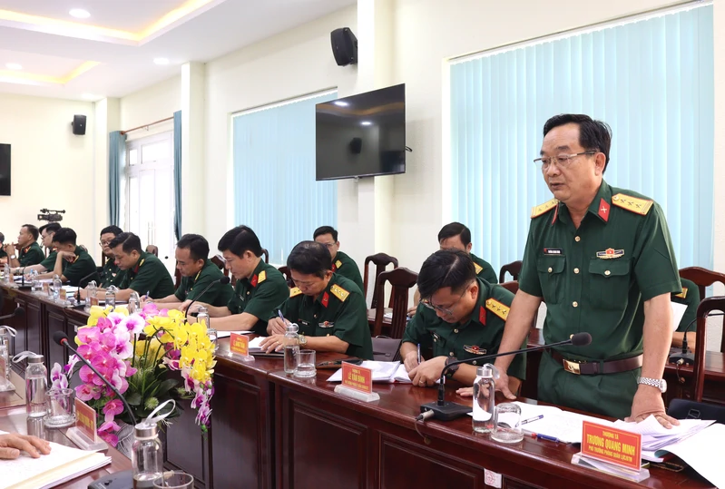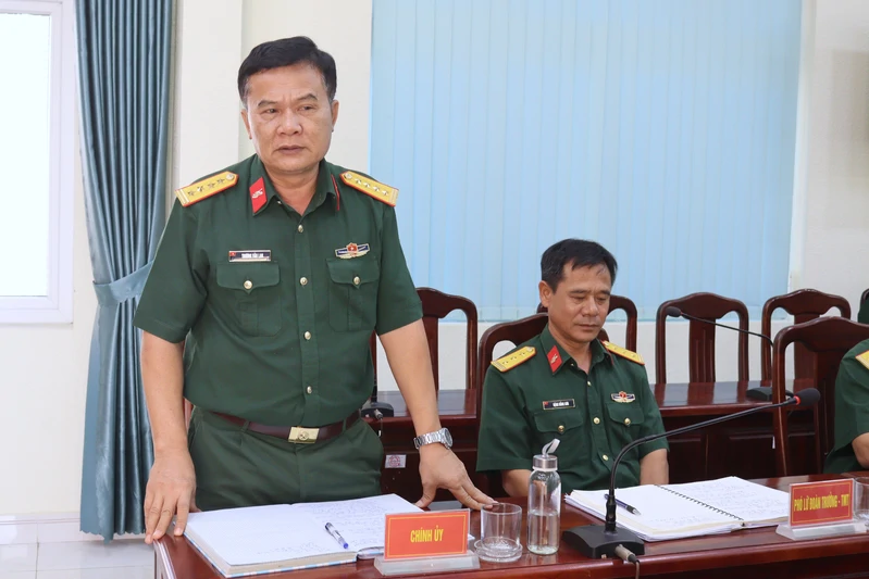 Thượng tá Trương Quang Minh, Phó trưởng Phòng Quân lực, Bộ Tham mưu Quân khu phát biểu tại buổi kiểm tra.
