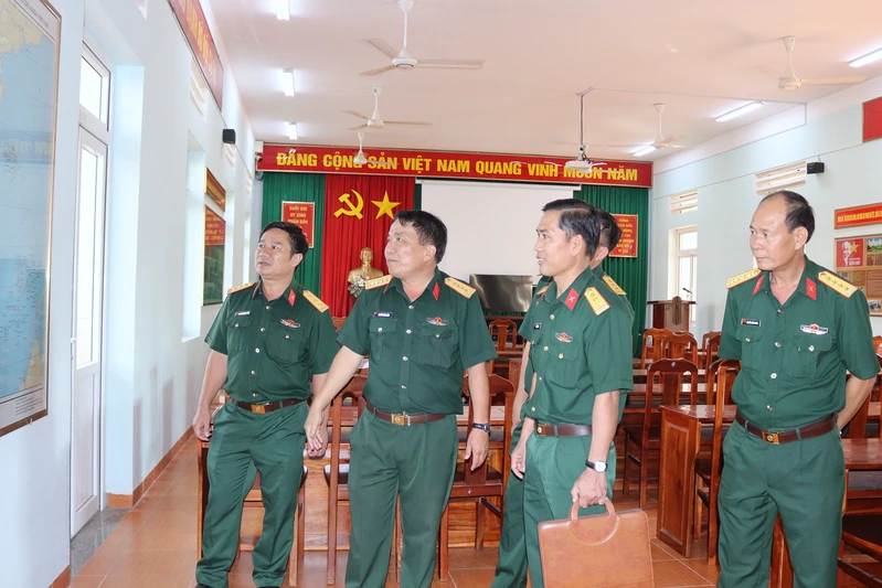 Đại tá Nguyễn Hồng Cảnh, Phó Chủ nhiệm Chính trị Quân khu (thứ 2 từ trái qua) và đoàn công tác kiểm tra Câu lạc bộ Quân nhân của Lữ đoàn 75.