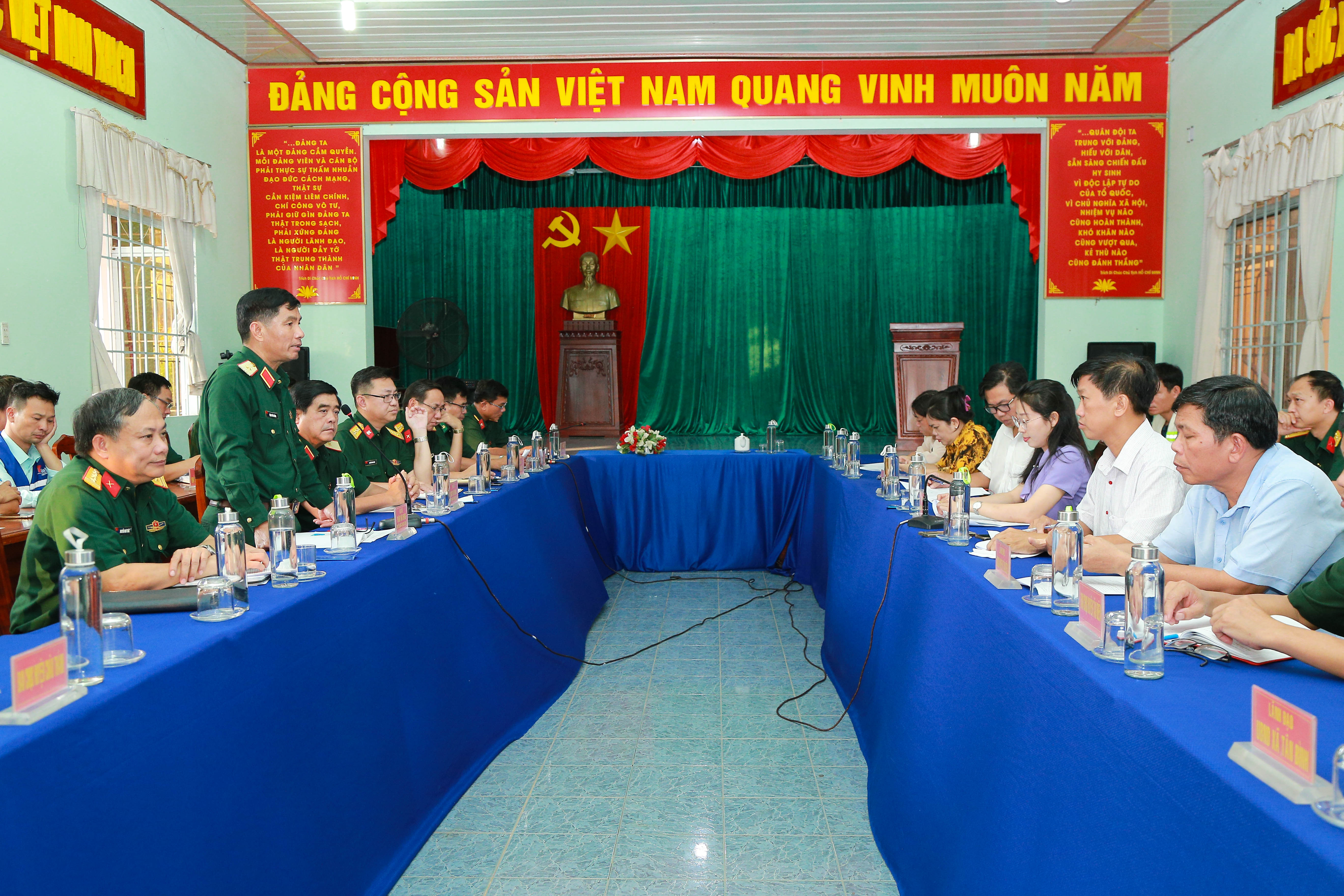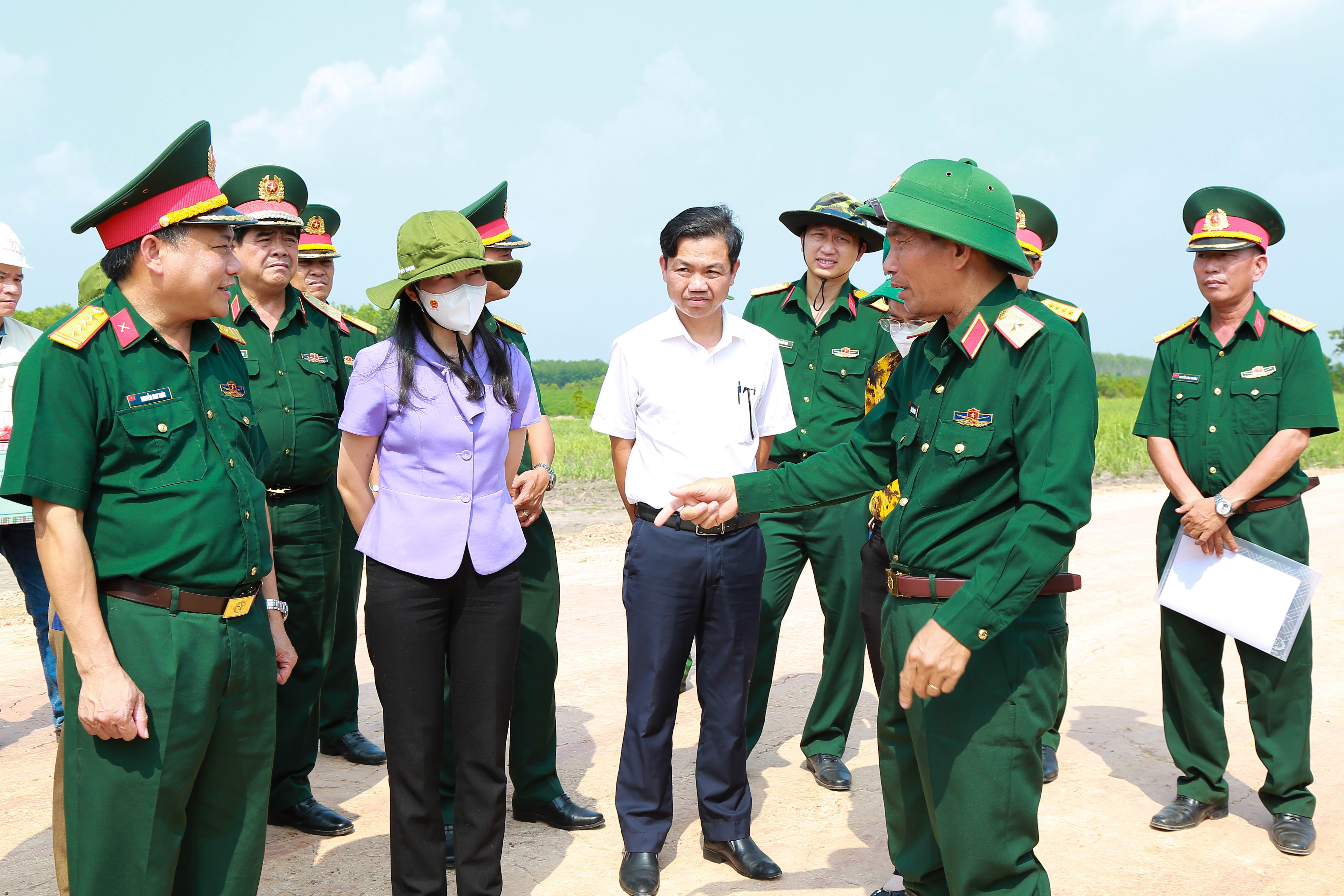 Thiếu tướng Đặng Văn Hùng, Phó Tư lệnh, Tham mưu trưởng Quân khu trao đổi với đồng chí Hoàng Thị Thanh Thúy, Phó Trưởng Đoàn chuyên trách Đoàn ĐBHQ tỉnh Tây Ninh kết quả sửa chữa gói thầu số 9, 10 và 11.