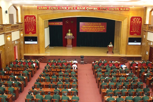 400 đại biểu là cán bộ chủ trì, lãnh đạo, chỉ huy các cơ quan, địa phương, đơn vị thuộc Quân khu 7 về dự hội nghị