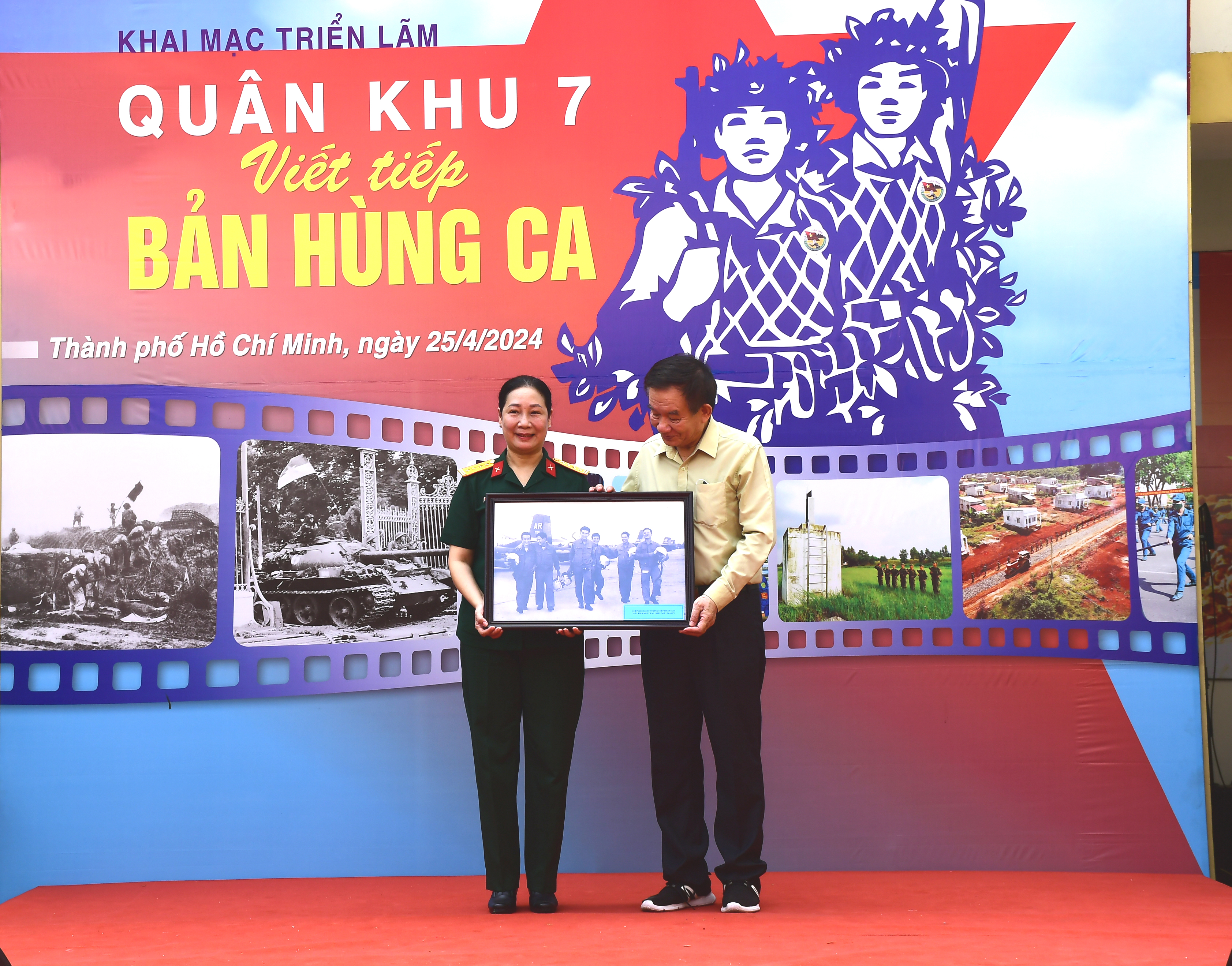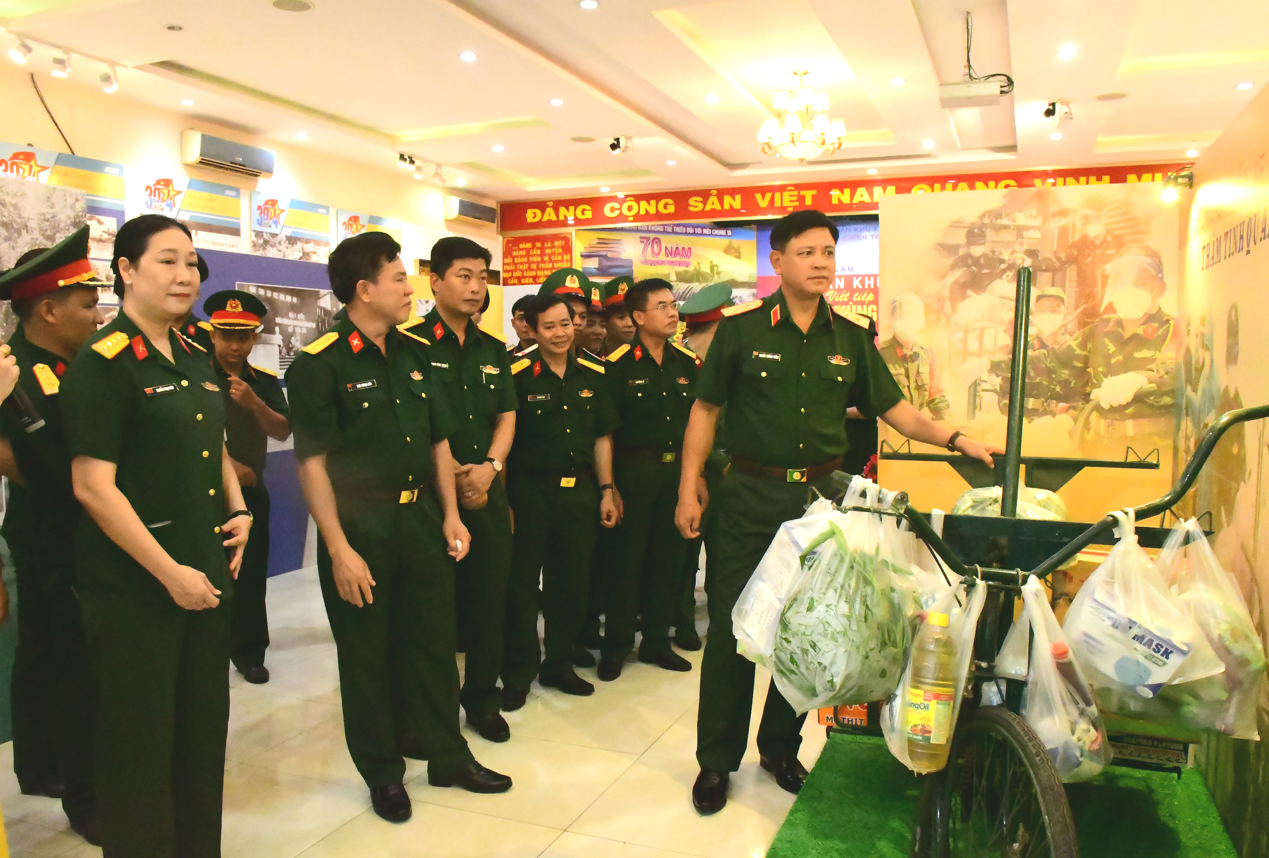 Tại phần triển lãm “Quân khu 7 - Tự hào tiếp bước”, những hình ảnh thể hiện rõ việc phát huy truyền thống đoàn kết gắn bó keo sơn với Nhân dân từ chiến dịch Điện Biên Phủ đến chiến dịch Hồ Chí Minh lịch sử. LLVT Quân khu luôn đi đầu xây dựng phát triển khối đại đoàn kết toàn dân tộc, xây dựng thế trận lòng dân, thế trận quốc phòng toàn dân gắn với thế trận an ninh nhân dân bằng nhiều hình thức, mô hình hiệu quả như: xây dựng chốt dân quân thường trực biên giới, đất liền; xây dựng điểm dân cư liền kề chốt dân quân biên giới, đồn trạm biên phòng; xây dựng LLVT địa phương, lực lượng dự bị động viên, dân quân tự vệ vững mạnh, toàn diện; xây dựng nhà tình nghĩa; đẩy mạnh mô hình “Dân vận khéo”; gắn bó thân thiện với đồng bào các dân tộc, tôn giáo; tăng cường giúp đỡ Quân đội Hoàng gia và Nhân dân Capuchia... Tại triển lãm, hình ảnh “Bộ đội Cụ Hồ”, người chiến sĩ LLVT Quân khu tiếp tục tỏa sáng trong cuộc chiến “chống dịch cứu dân”, một lần nữa khẳng định sức mạnh của khối đại đoàn kết toàn dân tộc, tô thắm thêm bản chất, truyền thống tốt đẹp của Quân đội nhân dân Việt Nam anh hùng.